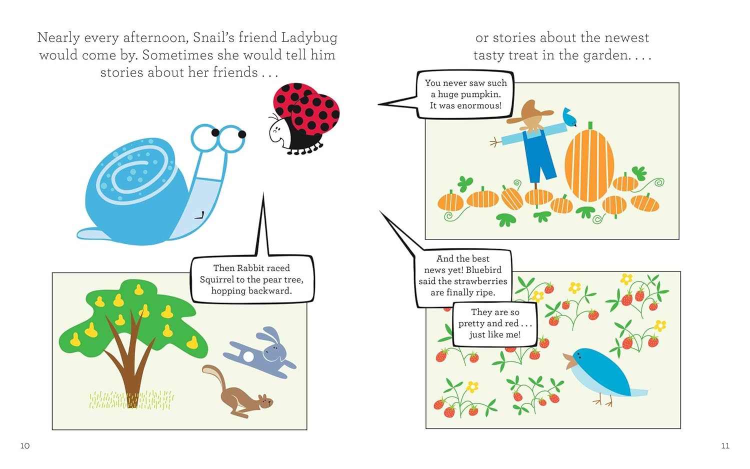 In his next adventure, Snail eats too many strawberries—his favorite food—and makes himself sick. His best friend Ladybug tells him he needs to find a forever home away from the tempting, yummy, red fruit. But Snail’s journey puts him in the path of a hungry chicken! Will he make it to his new home or be a tasty treat for this feathered, famished fiend?