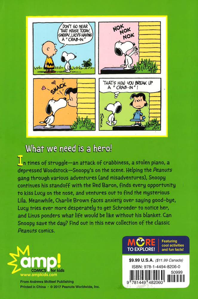 What we need is a hero! In times of struggle an attack of crabbiness, a stolen piano, a depressed Woodstock--Snoopy's on the scene. Helping the Peanuts gang through various adventures (and misadventures), Snoopy continues his standoff with the Red Baron, finds every opportunity to kiss Lucy on the nose, and ventures out to find the mysterious Lila. Meanwhile, Charlie Brown faces anxiety over saying good-bye, Lucy tries ever more desperately to get Schroeder to notice her, and Linus ponders what life would be like without his blanket. Can Snoopy save the day? Find out in this new collection of the classic Peanuts comics.