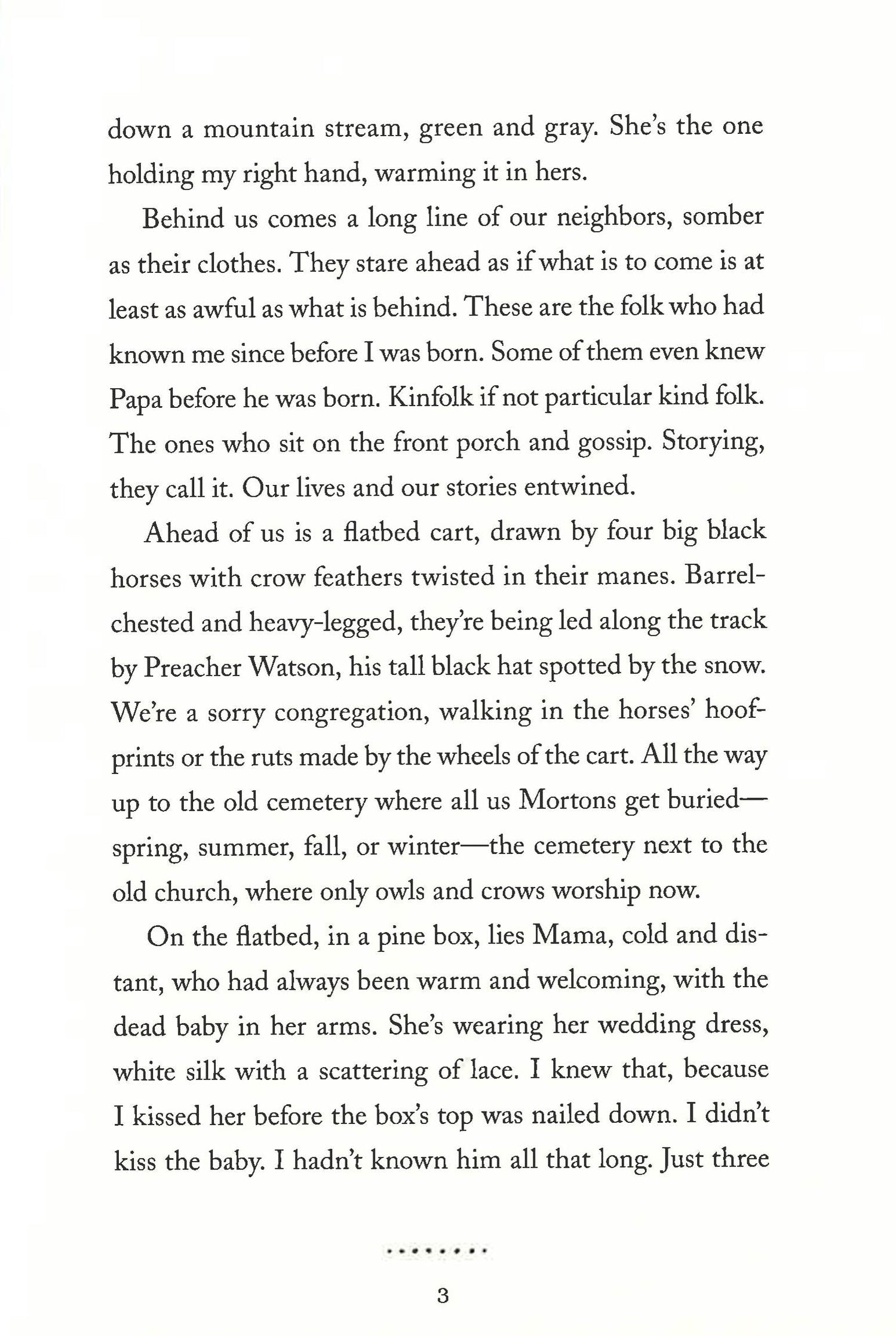 With her black hair, red lips, and lily-white skin, Summer is as beautiful as her father's garden. And her life in the mountains of West Virginia seems like a fairy tale; her parents sing and dance with her, Cousin Nancy dotes on her, and she is about to get a new baby brother. But when the baby dies soon after he's born, taking Summer's mama with him, Summer's fairy-tale life turns grim. Things get even worse when her father marries a woman who brings poisons and magical mirrors into Summer's world. Stepmama puts up a pretty face, but Summer suspects she's up to no good - and is afraid she's powerless to stop her.