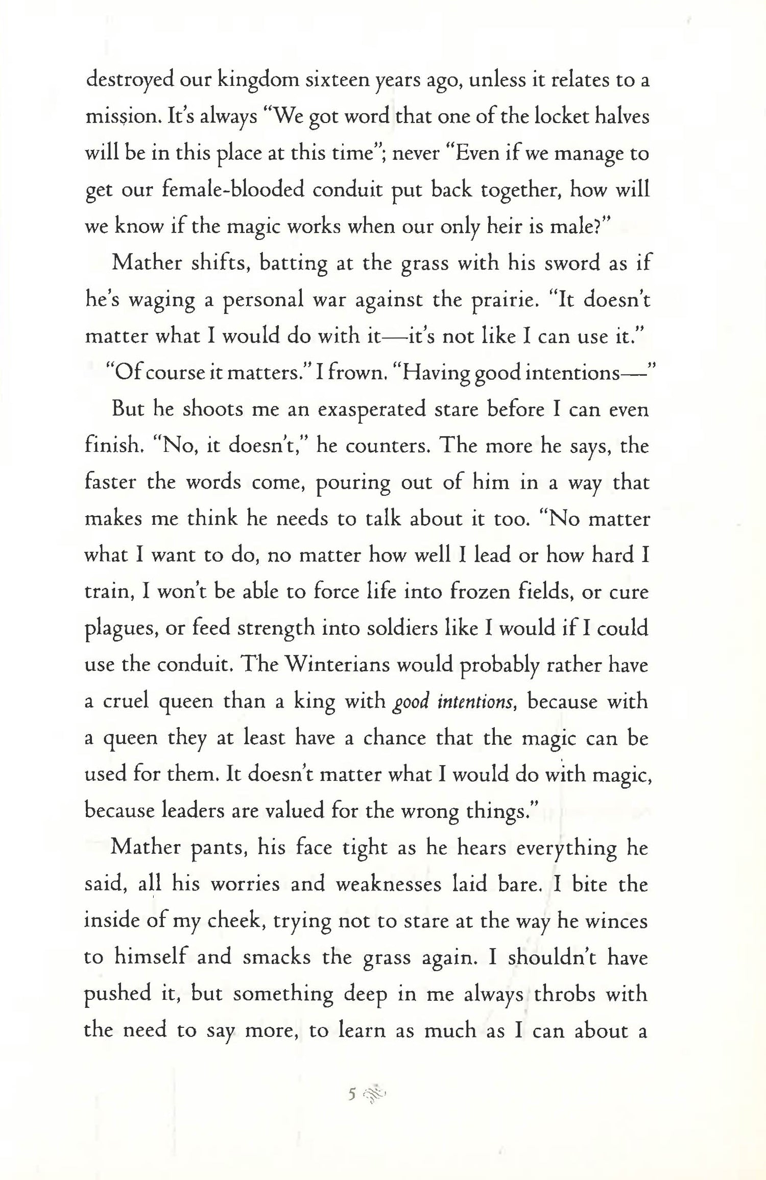 Orphaned as an infant during Winter's defeat, Meira has lived her whole life as a refugee. Training to be a warrior—and desperately in love with her best friend, Winter's future king—she would do anything to help Winter rise to power again.