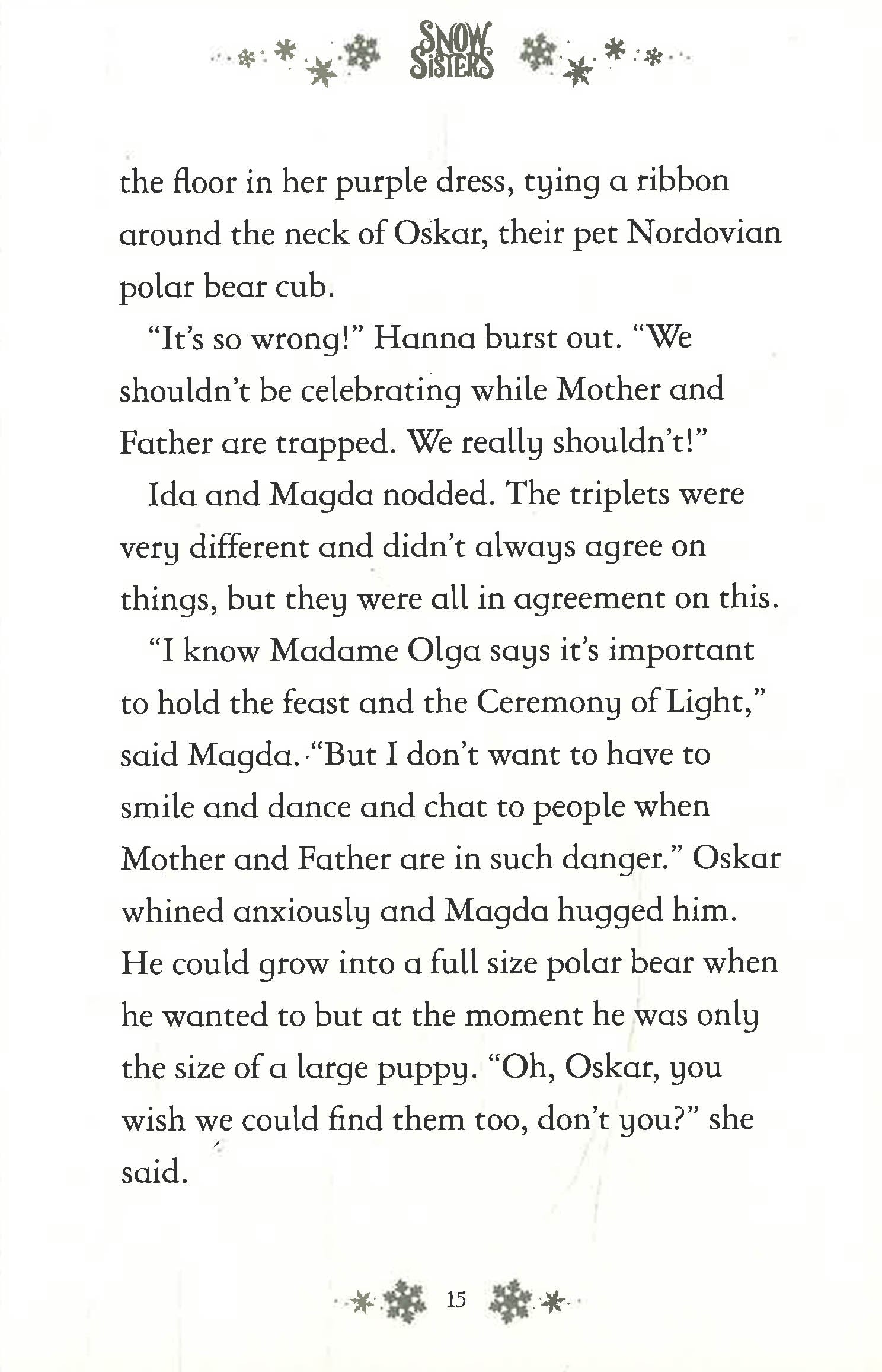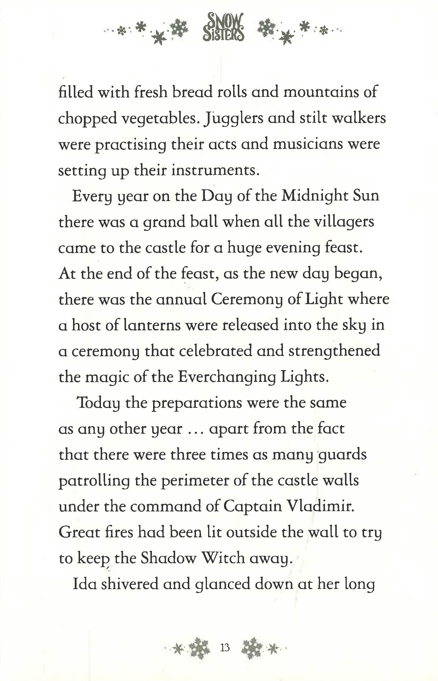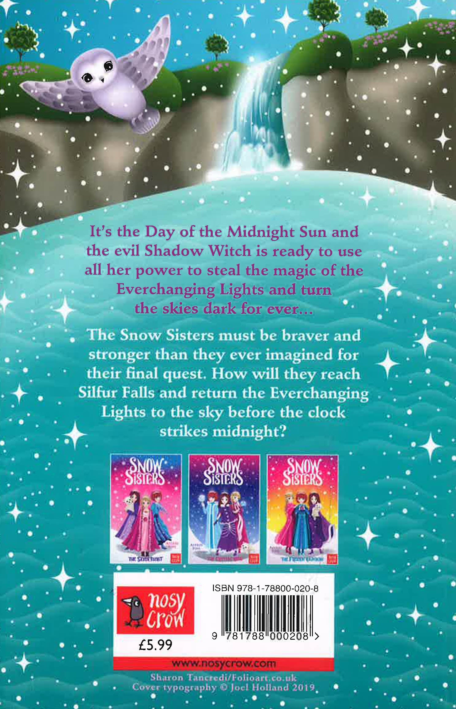 The fourth in the Snow Sisters series. Three brave sisters must race to discover their magical powers and save their home and their parents from the evil Shadow Witch! Luckily, they have a brave polar bear cub and a cast of cute snowy animals to help them...It's the Day of the Midnight Sun and the evil Shadow Witch is ready to use all her power to steal the magic of the Everchanging Lights and turn the skies dark forever...In their final quest, the Snow Sisters must be braver and stronger than they ever imagined. How will they reach Silfur Falls and return the Everchanging Lights to the sky before the clock strikes midnight? Beautifully illustrated throughout by Monique Dong, this magical action-adventure with real heart is perfect for fans of Frozen. The Snow Sisters series will have 7+ readers hooked till the final page.Check out all the Snow Sisters' adventures!The Silver Secret, The Crystal Rose, The Frozen Rainbow and The Enchanted Waterfall.