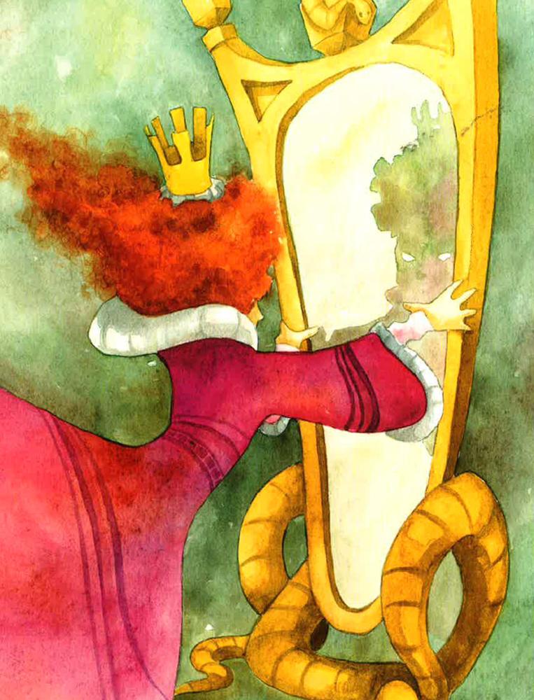 The Queen is angry. She makes a poisoned apple for Snow White.