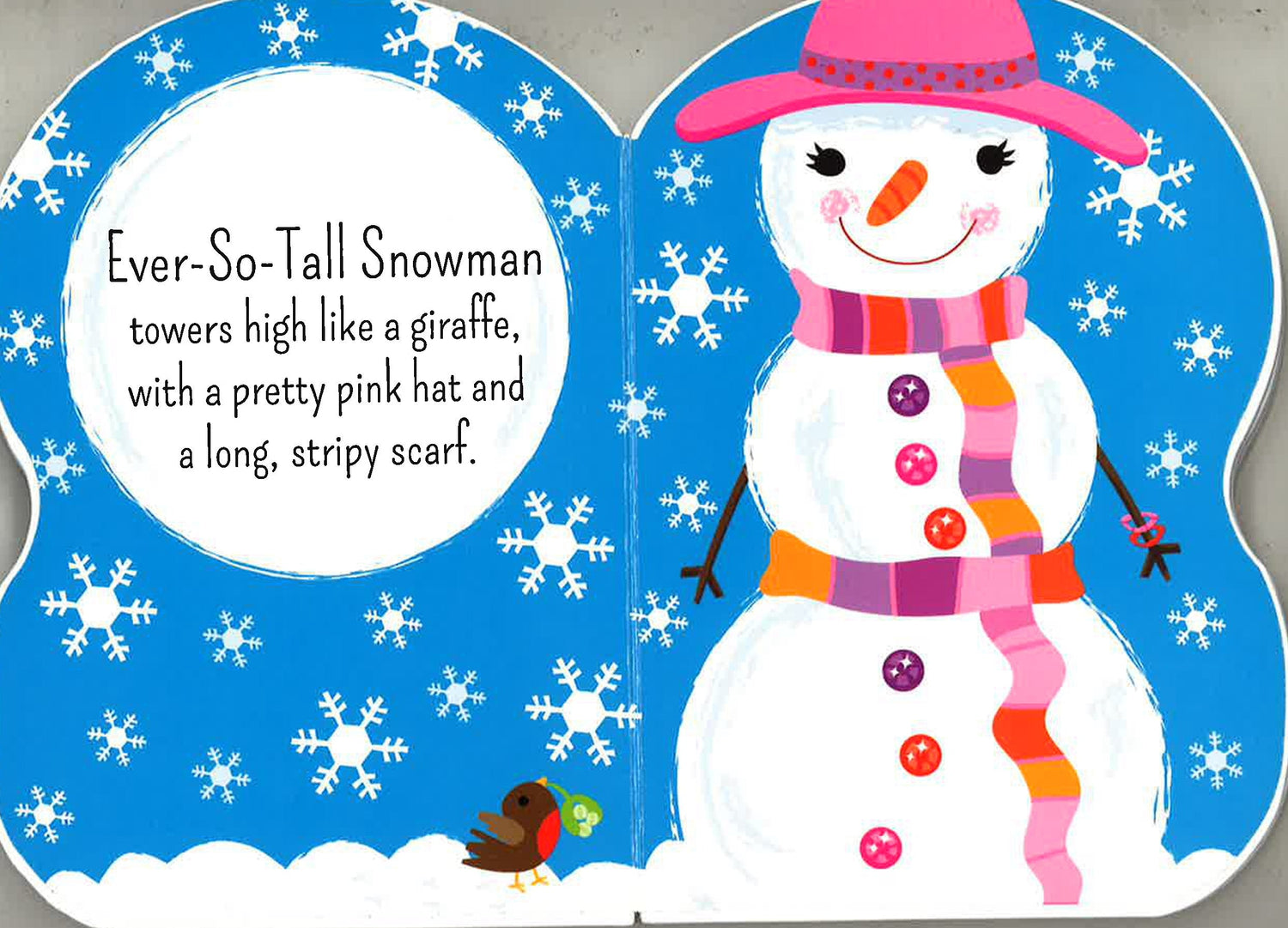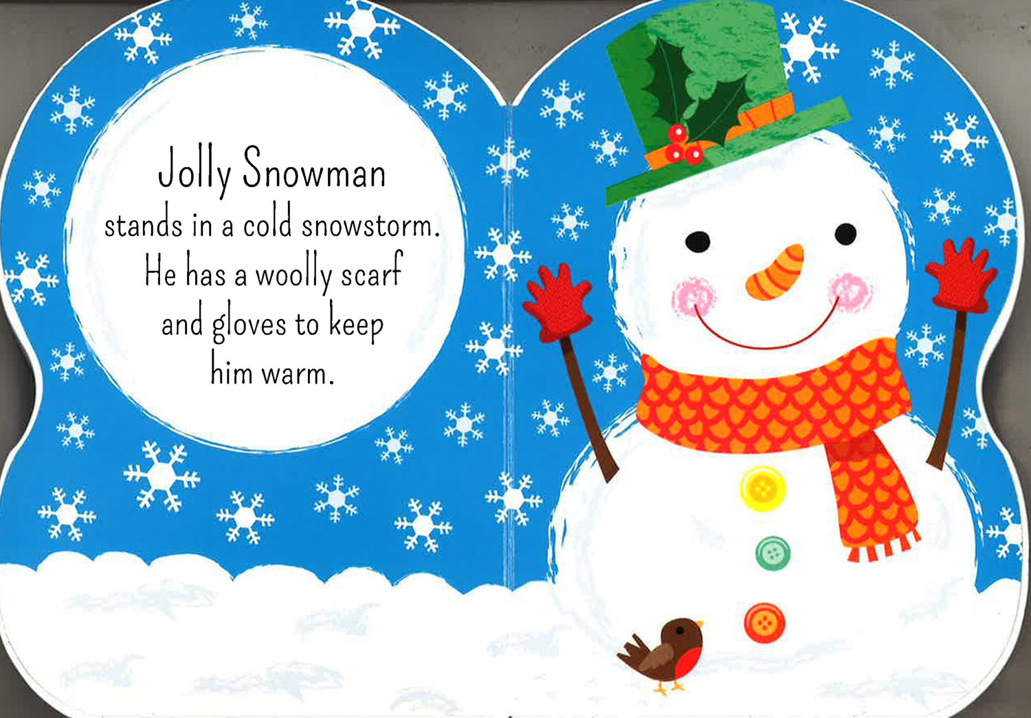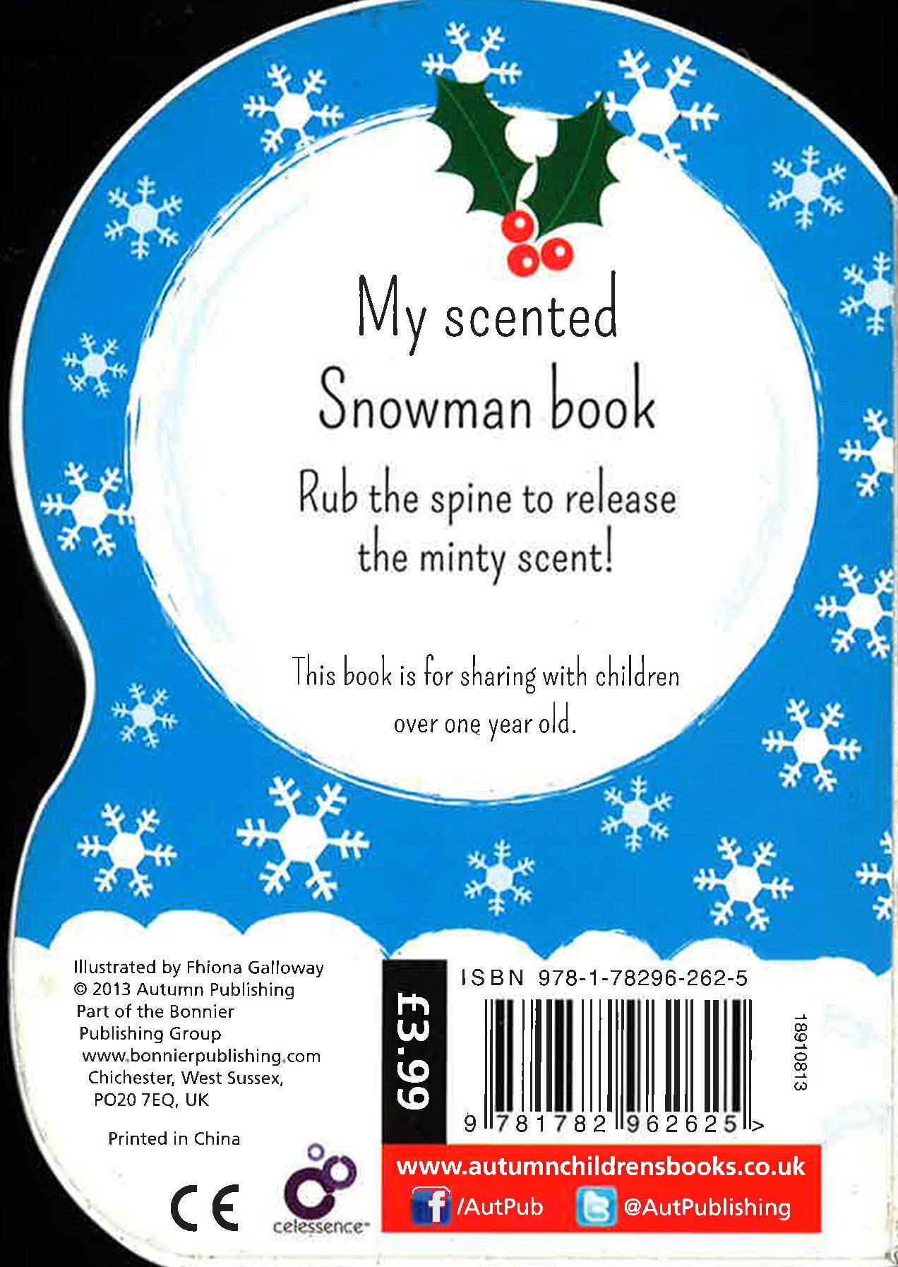 A colourful chunky storybook each one telling the story of a particular snowman. The covers feature glitter and the cloth-bound spines are scented with cutting-edge technology so each book has it's unique delicious scent.