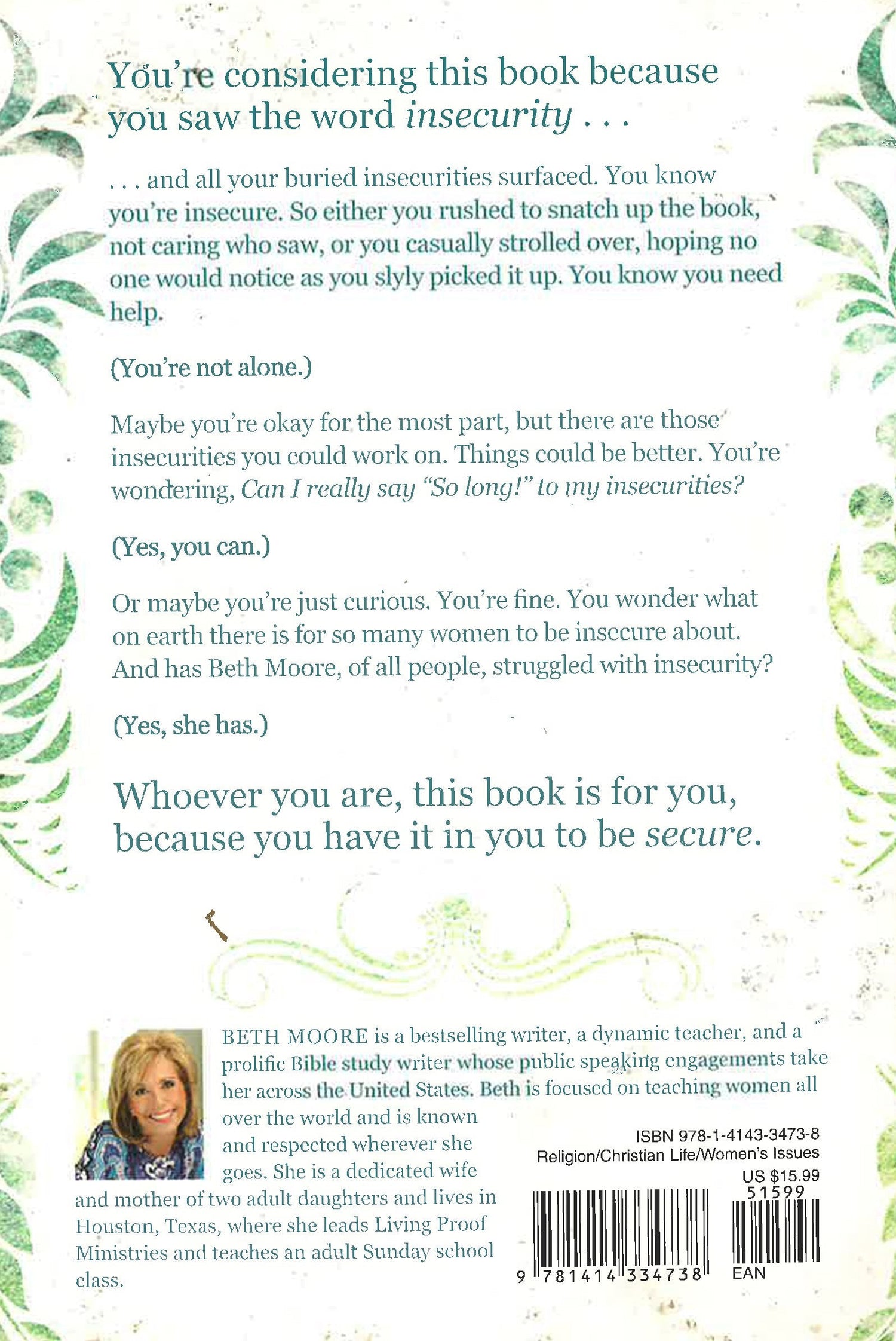 2011 Retailers Choice Award winner!It's time to say, "So long!" to insecurity!Every woman is insecure about something--her looks, her relationships, her career, you name it. The problem is, not only does insecurity make us miserable, it cripples us and makes us feel worthless. But no woman is ever worthless--especially in the eyes of God.Join respected Bible teacher and bestselling author Beth Moore as she encourages you to say, "So long!" to insecurity and embrace all the wonderful traits and characteristics that make you the unique, beautiful, and amazing woman of God you are.