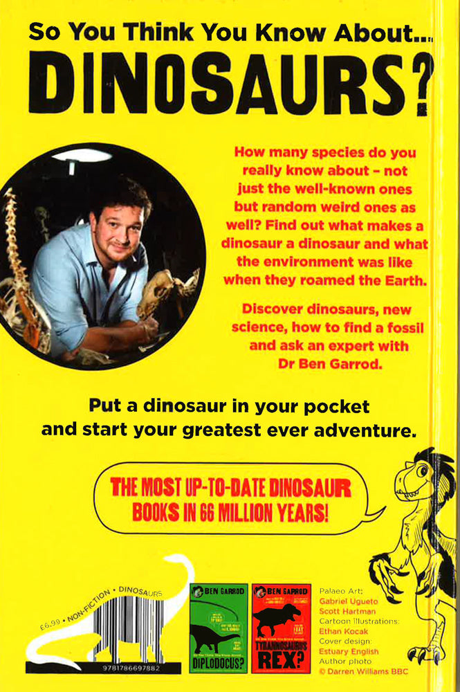 Biologist and TV scientist Professor Ben Garrod's fun, funny, informative and collectible series about dinosaurs, launching with T. rex, Diplodocus and Triceratops. Biologist and TV scientist Professor Ben Garrod's fun, funny, informative and collectable series of books about dinosaurs is the most up-to-date on the market. This pocket-size series launches with Tyrannosaurus rex, Triceratops and Diplodocus, introduced by Steve Backshall, and is also available in audio download. The series continues with Velociraptor, Stegosaurus and Spinosaurus, introduced by Dr Jane Goodall. These are the most up-to-date dino books in 66 million years! Did you know that not all dinosaurs were green and scaly, some were ginger and feathered, or that they didn't all roar, they cooed like pigeons, or that the ultimate prehistoric predator was actually not a dinosaur? TV scientist, Ben Garrod, is proud to be a geek as he mixes hard science and humour to prove that science is for everyone. Looking at the evolutionary arms race, prey, predators, place, time, groups and species, Ben reveals new-look dinosaurs. Additional sections include: Ask an Expert, New Science and Fossil Finder as well as quizzes to test your dinosaur knowledge. Praise for Professor Ben Garrod: 'A celebration of everything that science is really about' NatSCA. 'A perfect primer for kids to learn more about the amazing "terrible lizards"' BBC Wildlife Magazine. 'He's the man! The genius is his knowledge; the genius is the man himself!' Chris Evans, Virgin Radio Breakfast Show. 'Shines a fresh, contemporary light on this ever-popular topic' The Bookseller. 'Collectable and eye-catching, with plenty of diagrams and illustrations' Books for Keeps.
