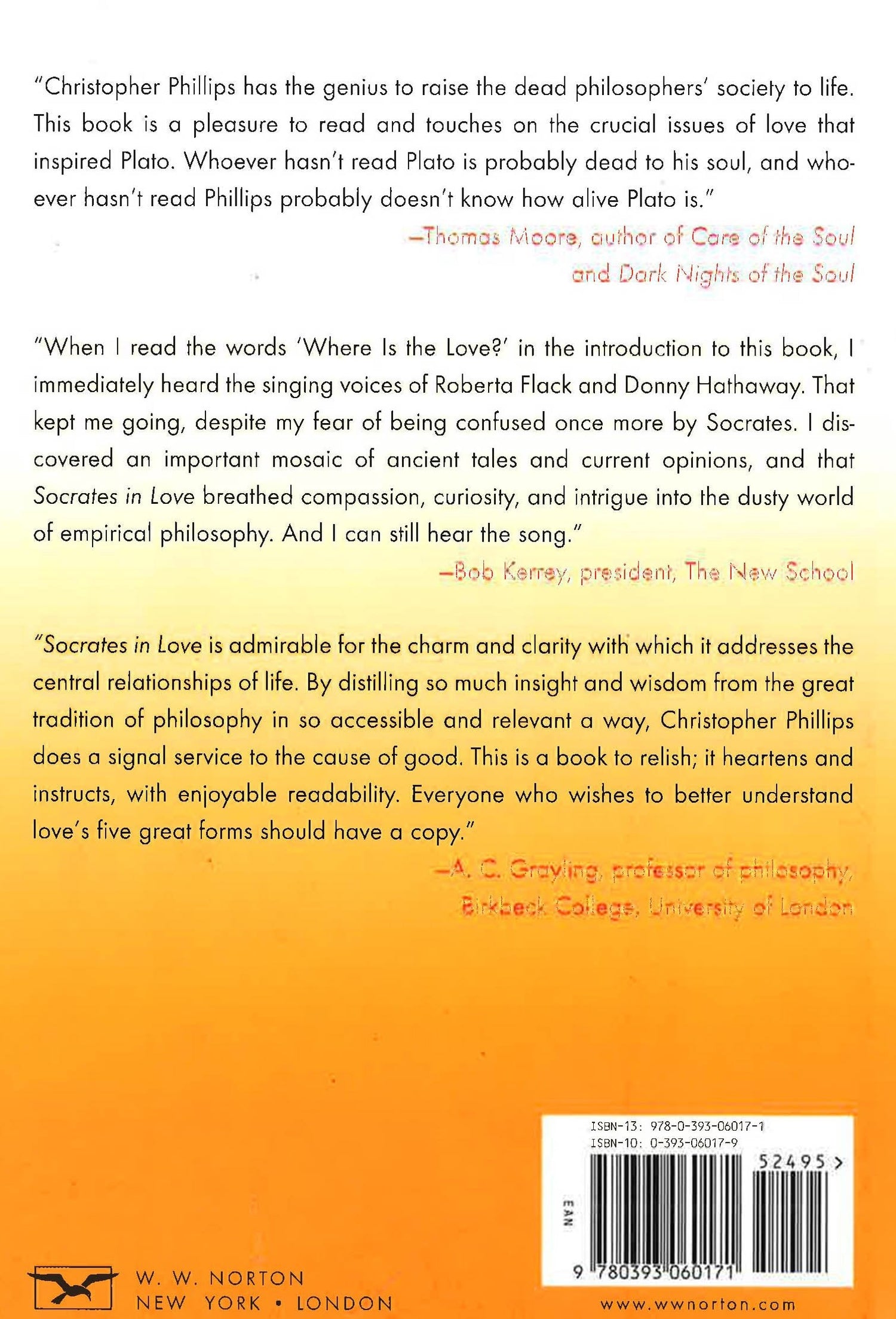 Christopher Phillips goes to the heart of philosophy and Socratic discourse to discover what we're all looking for: the kind of love that makes life worthwhile. Love here is not defined only or even primarily as eros, but in all its classic varietiesfrom love of family and love of neighbor to love of country, love of God, love of life, and love of wisdom. Phillips's explorations take us from New Orleans at Mardi Gras and the gambling dens of Las Vegas to the last evangelical revival presided over by Billy Graham. He talks with moms and dads about "parent love," with inmates of a maximum-security prison about "unconditional love," with Hurricane Katrina refugees and a family who took them in, and with Japanese seniors and schoolchildren in Hiroshima Peace Park. Throughout, he enriches his dialogues with commentary on the great philosophers of love from the ancients to Rumi to Ayn Rand and Anais Nin.
