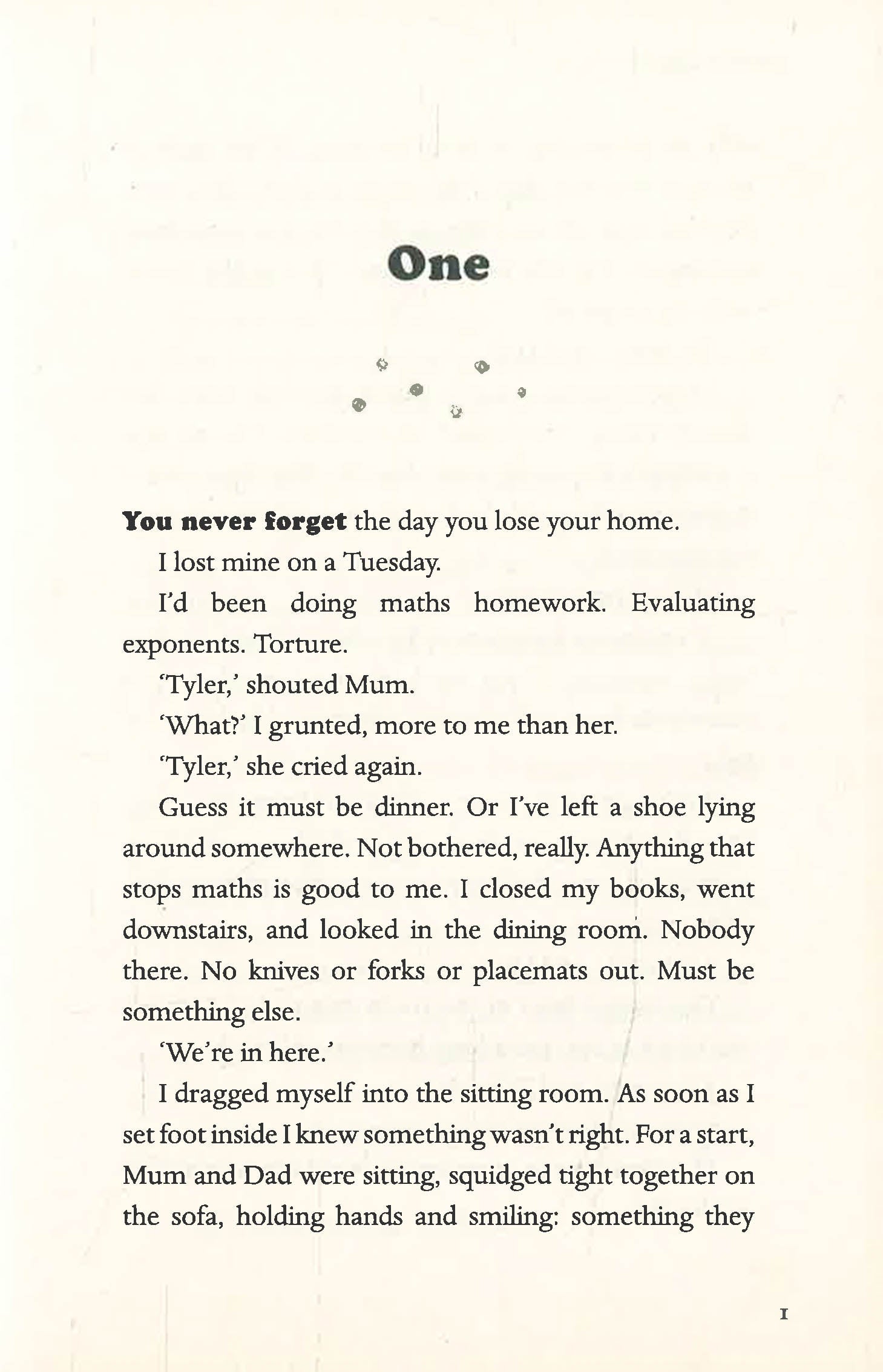 15-year-old Tyler's teenage angst turns to outright rebellion when his family leave London for a new life in Yorkshire. He's angry with his parents about the upheaval and furious at losing his home. With only the dog to confide in, Tyler has no idea that a chance meeting with a skinny girl called Spider will lead him into a world he never even knew existed. Spider is sofa surfing and Tyler finds himself spinning a tangled web of lies in his efforts to help her escape her world of fear and insecurity.