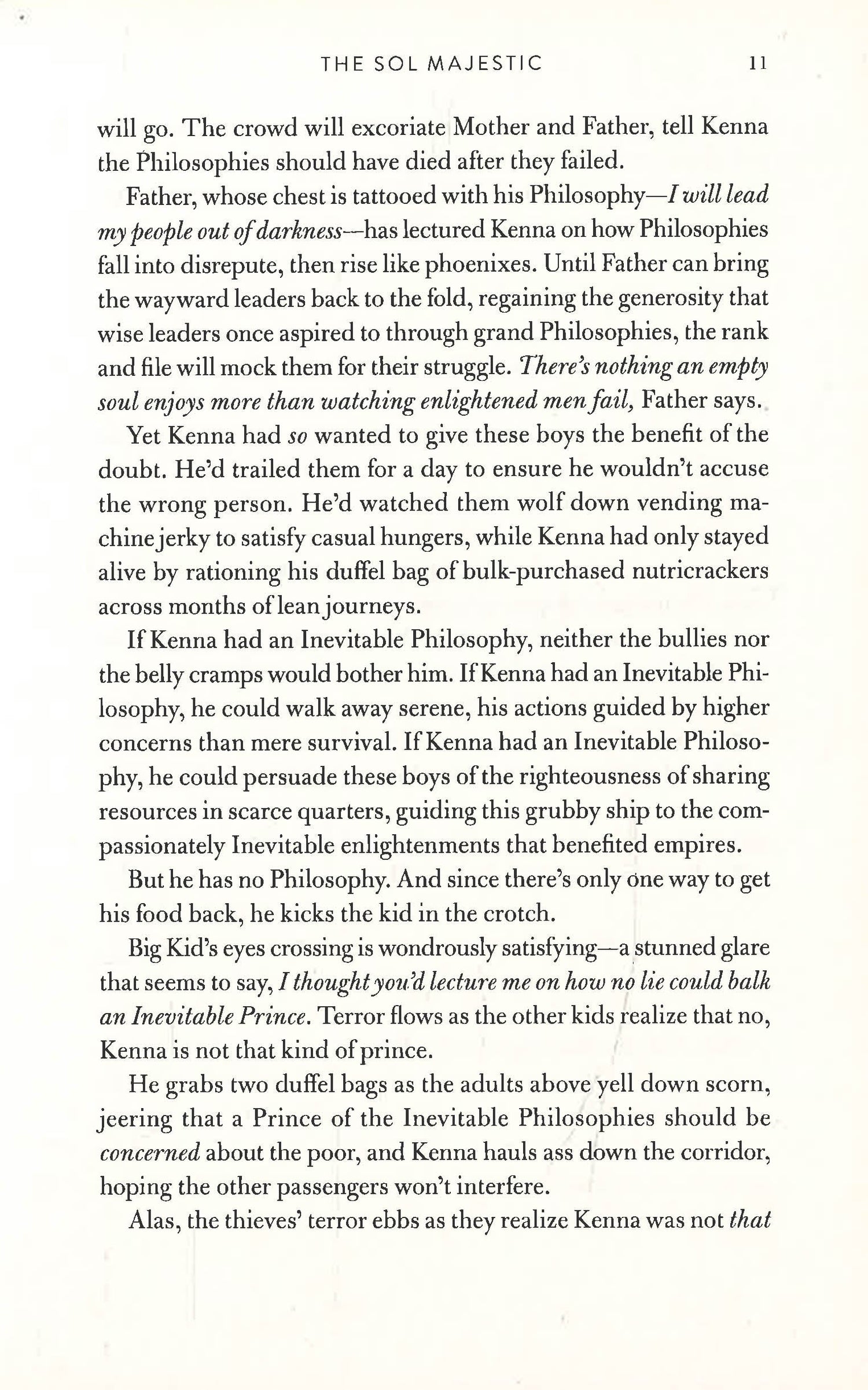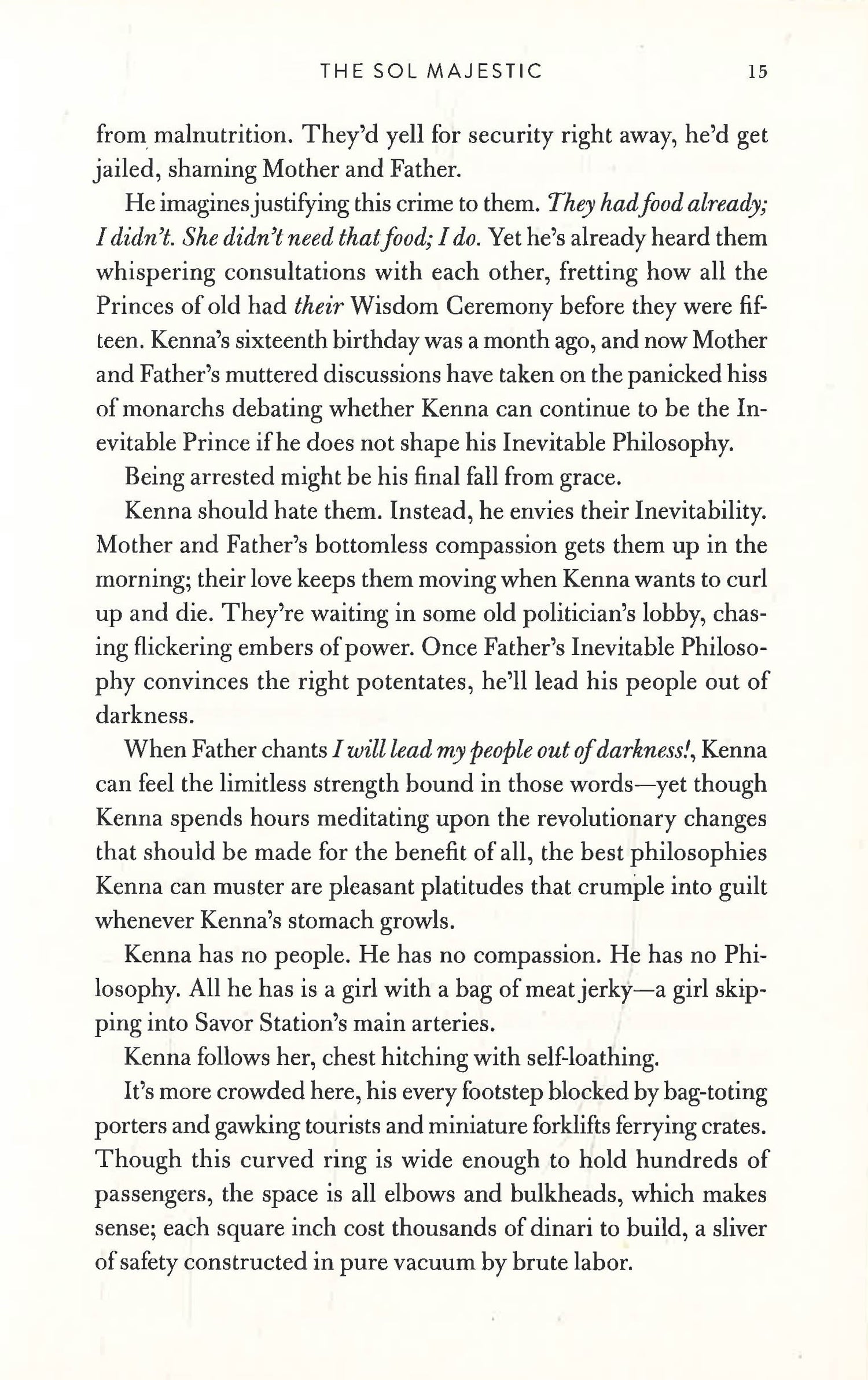 Kenna, an aspirational teen guru, wanders destitute across the stars as he tries to achieve his parents' ambition to advise the celestial elite.