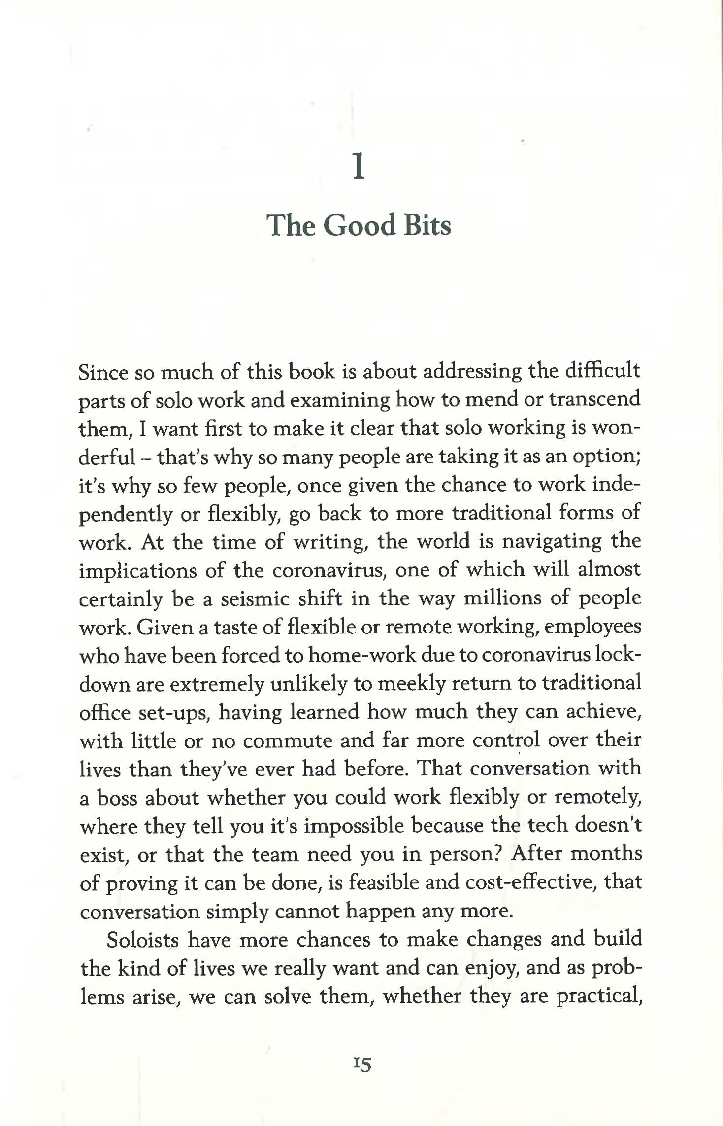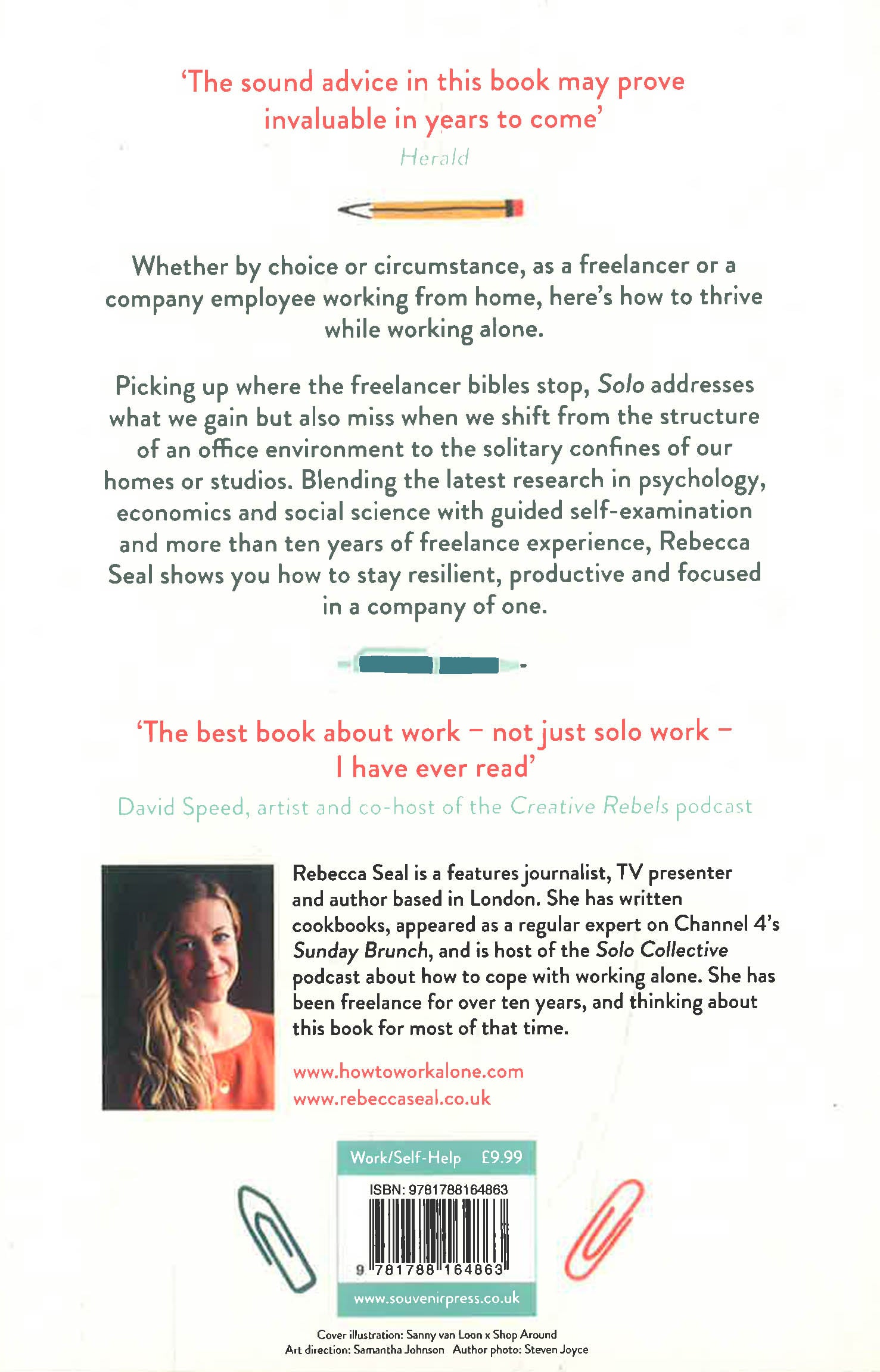 Picking up where the freelancer bibles stop, Solo addresses what we gain but also miss when we shift from the structure of an office environment to the solitary confines of our homes or studios. Blending the latest research in psychology, economics and social science with guided self-examination and more than ten years of freelance experience, Rebecca Seal shows you how to stay resilient, productive and focused in a company of one.