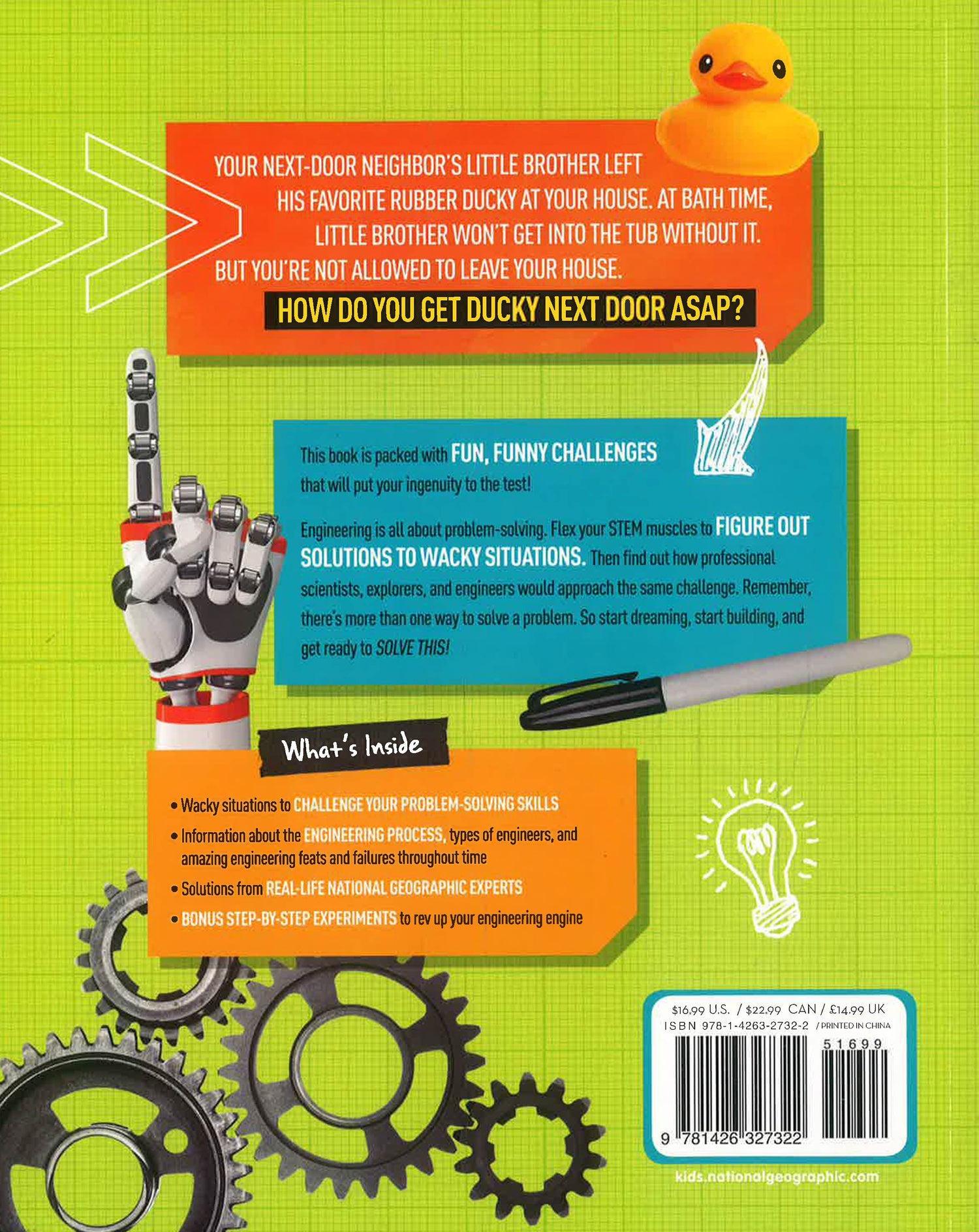 In this fun book, kids are confronted with wacky scenarios like this one: You're playing with your little sister when a vulture swoops down and grabs her favorite teddy bear. Mid-flight, the vulture realizes it doesn't care for the taste of fake fur and drops it to the ground. But now the plushie is on the other side of a raging river. How do you stop your sister from crying, stay safe, and save the day? Each challenge invites kids to think creatively to problem solve. Then they can see how different National Geographic explorers tackled the challenge. One of the big lessons? There's often more than one solution!