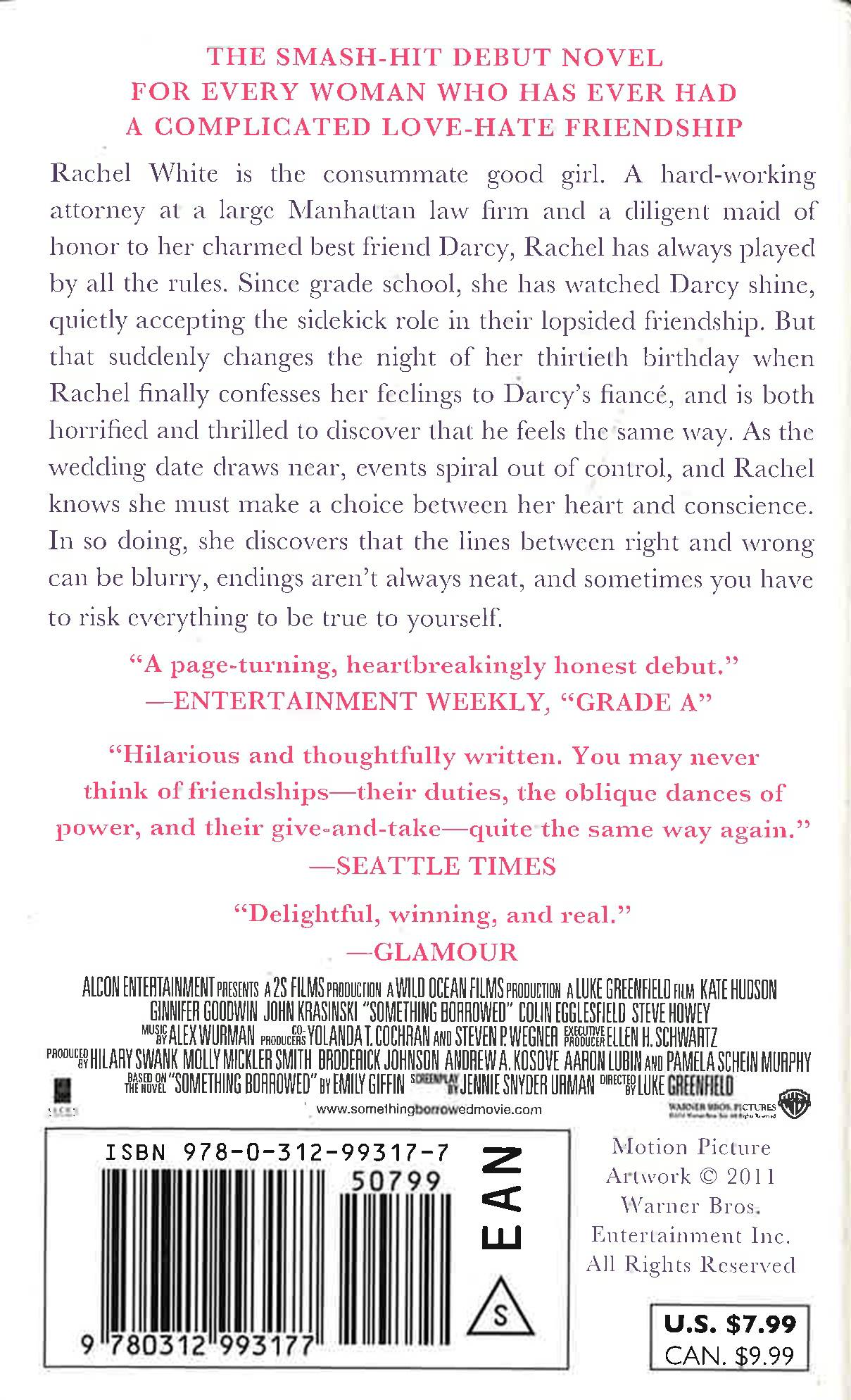 Something Borrowed is the smash-hit debut novel from Emily Giffin for every woman who has ever had a complicated love-hate friendship.