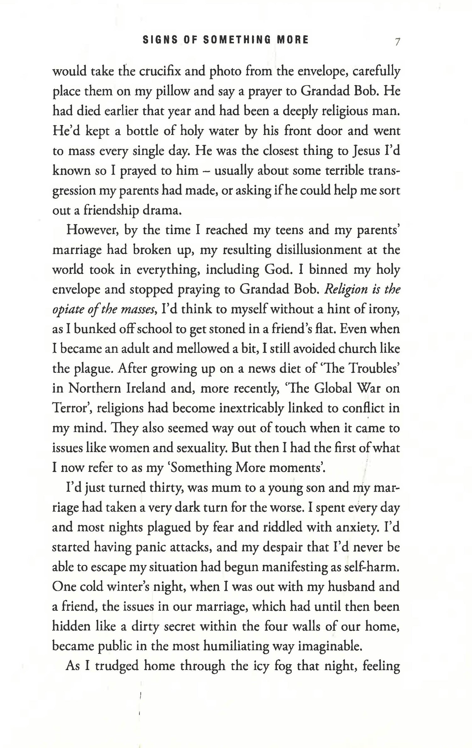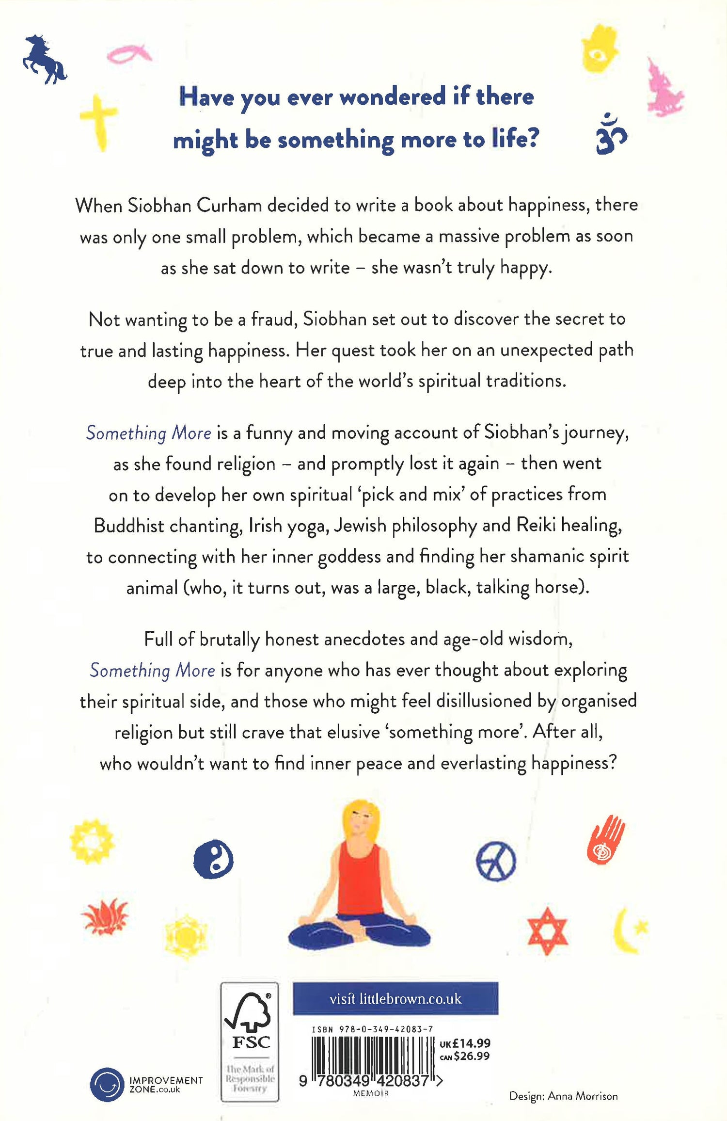 Have you ever wondered if there might be something more to life?When Siobhan Curham decided to write a book about happiness there was only one small problem, which became a massive problem as soon as she sat down to write - she wasn't truly happy.Not wanting to be a fraud, Siobhan set out to discover the secret to true and lasting happiness. Her quest took her on an unexpected path deep into the heart of the world's spiritual traditions.Something More is a funny and moving account of Siobhan's journey, as she found religion - and promptly lost it again - then went on to develop her own spiritual 'pick and mix' of practises from Buddhist chanting, Irish yoga, Jewish philosophy and Reiki healing, to connecting with her inner goddess and finding her shamanic spirit animal (who, it turns out, was a large, black, talking horse).Full of brutally honest anecdotes and age-old wisdom, Something More is for anyone who has ever thought about exploring their spiritual side, and those who might feel disillusioned by organised religion but still crave that elusive 'something more'. After all, who wouldn't want to find inner peace and everlasting happiness?