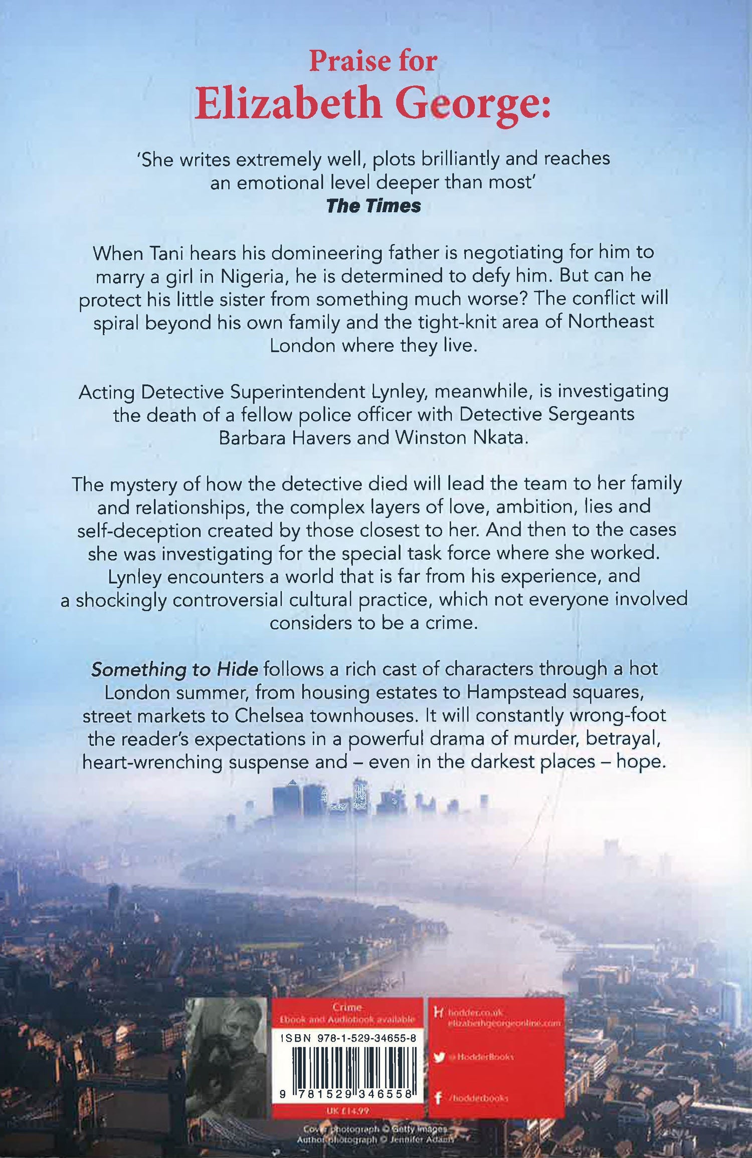A hugely complex and entertaining novel - Star Pick*, The Times Crime Club Elizabeth George delivers another intelligent, intricate mystery - New York Times Superlative . . . This is a memorable addition to [the Inspector Lynley] series - Publishers Weekly (starred, boxed review) Detective Sergeant Barbara Havers and Detective Inspector Thomas Lynley are back in the next Lynley novel from Sunday Times bestselling author Elizabeth George. A Nigerian born detective sergeant working for the Metropolitan Police is found unconscious in her own flat and ends up in hospital where she dies of her injury. The post-mortem reveals that the subdural hematoma is the result of a blow to her head. DI Thomas Lynley, DS Barbara Havers and DS Winston Nkata are called in to investigate a case that touches upon not only the work and the life of the murdered detective but also upon a controversial cultural tradition that damages and often destroys the future of everyone it involves.
