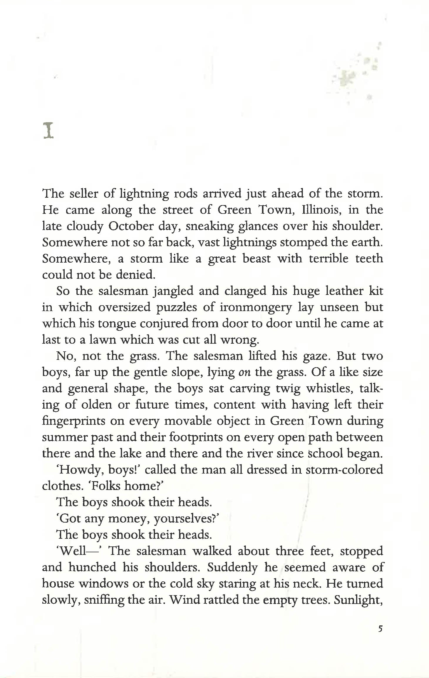 It's the week before Hallowe'en, and Cooger and Dark's Pandemonium Shadow Show has come to Green Town, Illinois. The siren song of the calliope entices all with promises of youth regained and dreams fulfilled . . .
