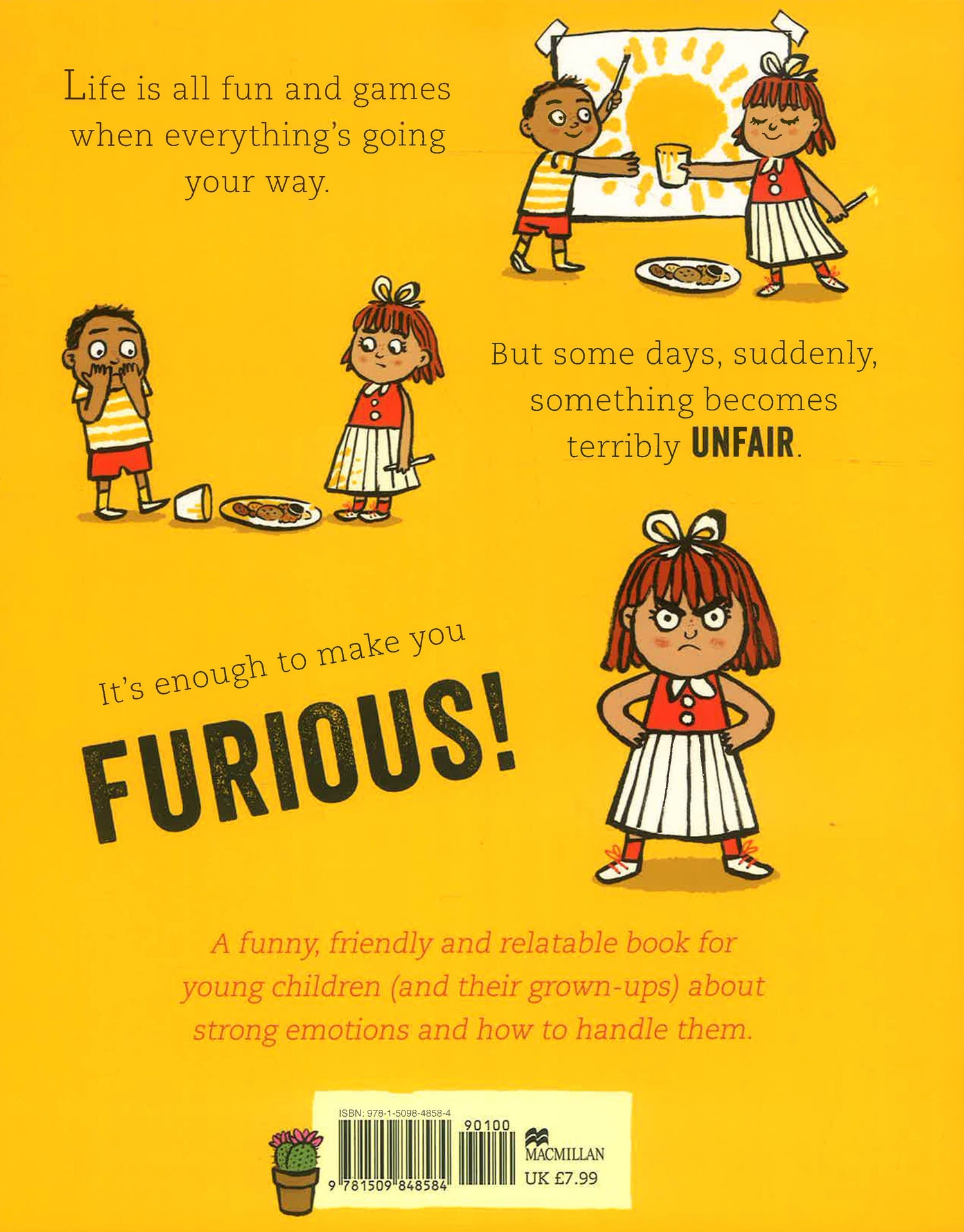 Life is all fun and games when everything's going your way. But some days, suddenly, something becomes horribly UNFAIR. A melting ice cream, a too-tight t-shirt, a boy who doesn't share . . . it's enough to make you FURIOUS. But, as this little girl discovers, it's nothing that a deep breath, a happy song and a good cuddle can't sort out.