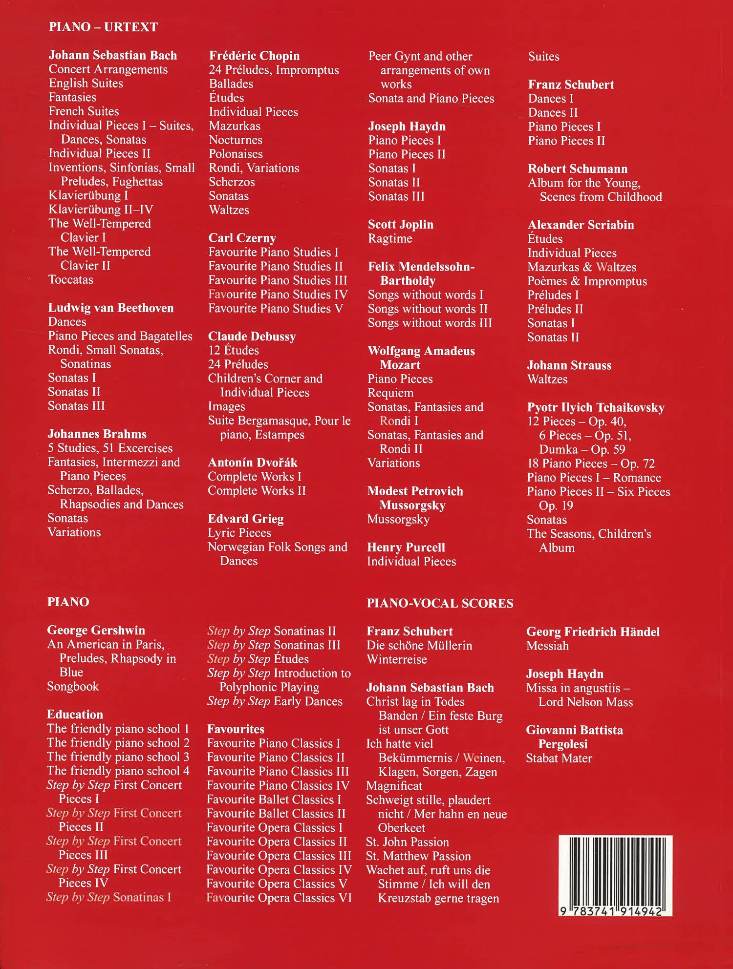 Soft bound music score for piano. Famous composers and musicians from all over Europe.