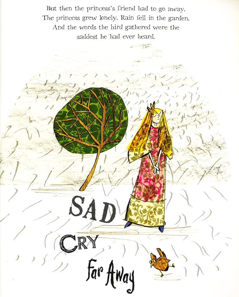 What will make a sad princess happy? Beautiful things won't do, as the birds in the palace garden discover. But when Little Bird makes up a simple song of friendship from words he's collected in his nest, she knows she'll never be lonely again.