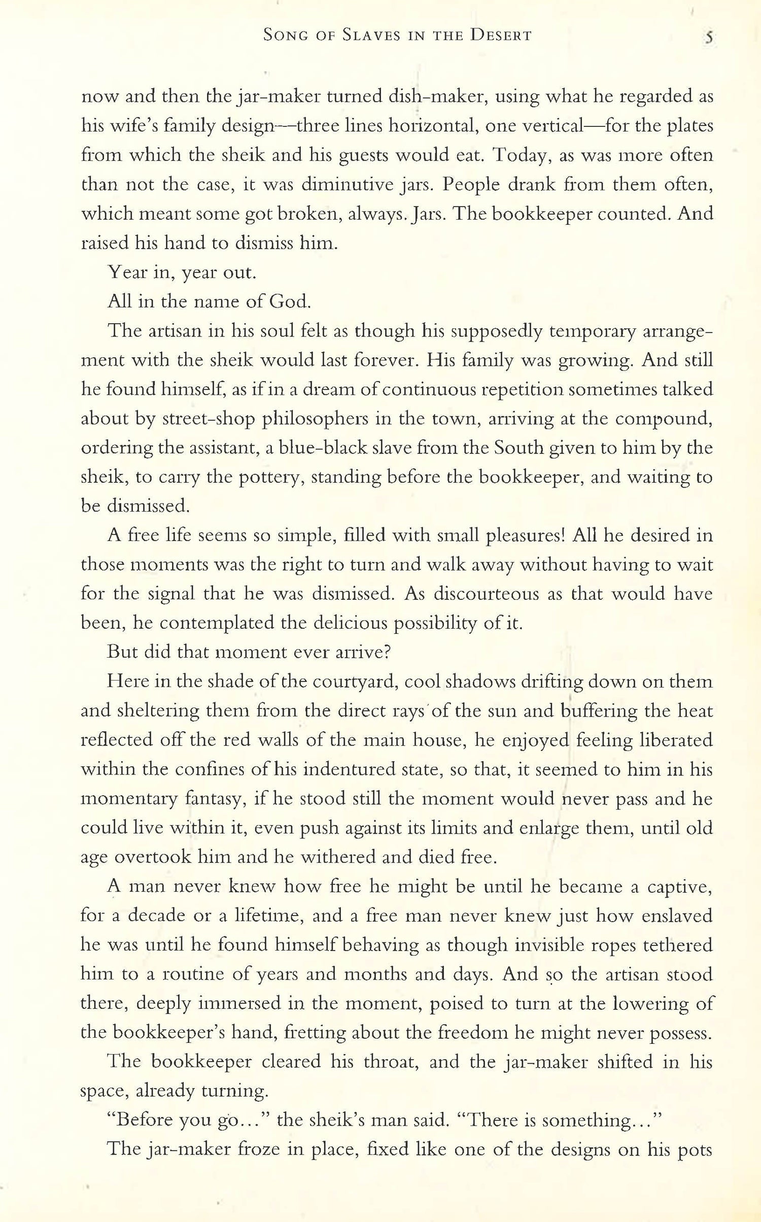 Lyrically told and impeccably researched, Song of Slaves in the Desert traces the story of Nathaniel Pereira, a young New Yorker who's called to revive his uncle's South Carolina plantation. Nathaniel is struck by the sobering reality of slavery as he becomes captivated by the young slave Liza. Liza's never known the meaning of freedom, and as Nathaniel plunges into the murky mysteries of slavery, she can see how he might change her life forever. A masterful writer, Cheuse traces the thread of slavery from sixteenth-century Timbuktu and grapples with the wild nature of love.
