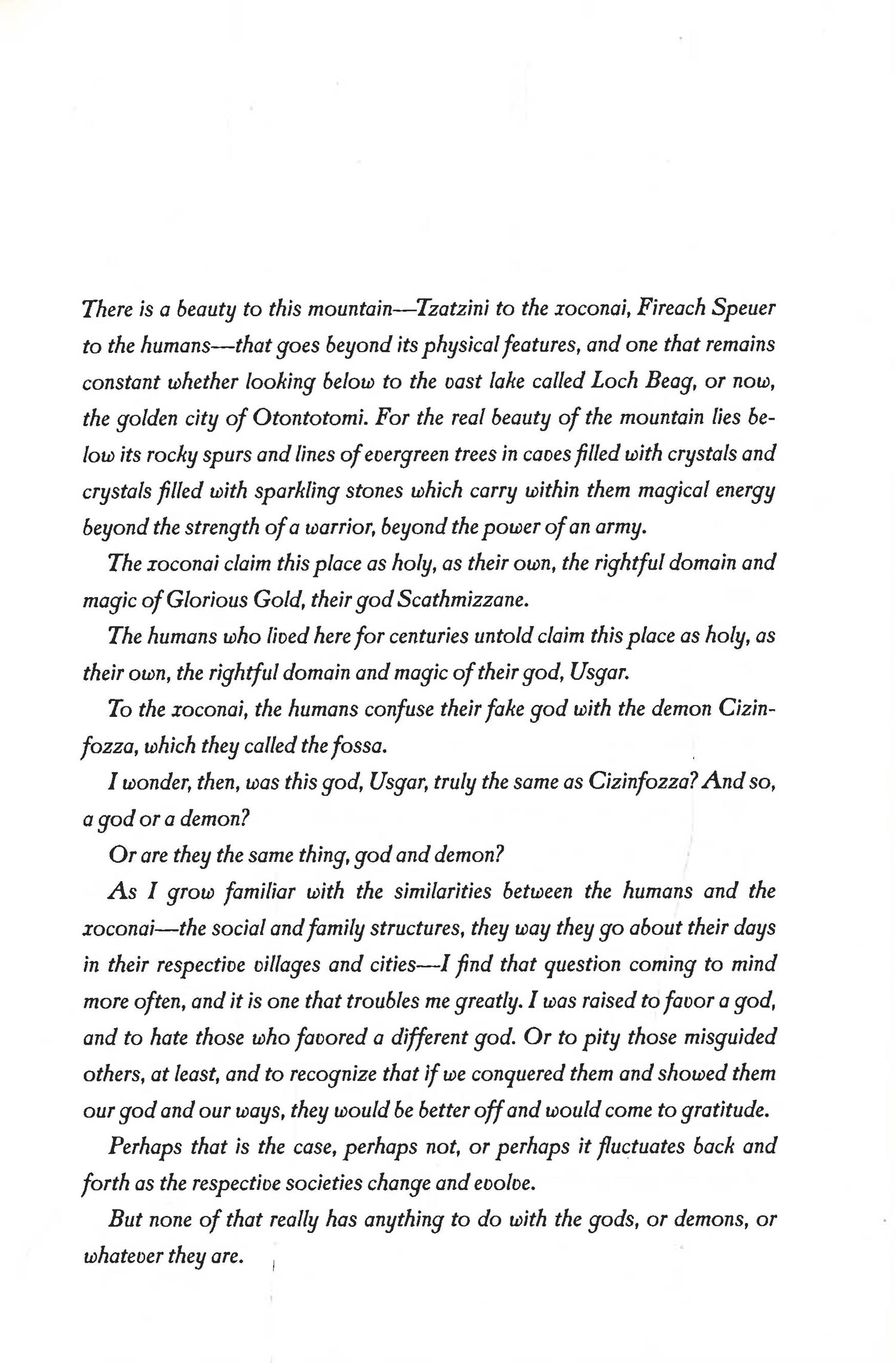 War has come to Fireach Speur. The once forgotten Xoconai empire has declared war upon the humans west of the mountains, and their first target are the people of Loch Beag. Lead by the peerless Tzatzini, all that stands in the way of the God Emperor's grasp of power is Aoelyn, Talmadge, and their few remaining allies. But not all hope is lost. Far away from Fireach Speuer, an ancient tomb is uncovered by Brother Thaddeus of the Abellican Church. Within it is the power to stop the onslought of coming empire and, possibly, reshap the very world itself.