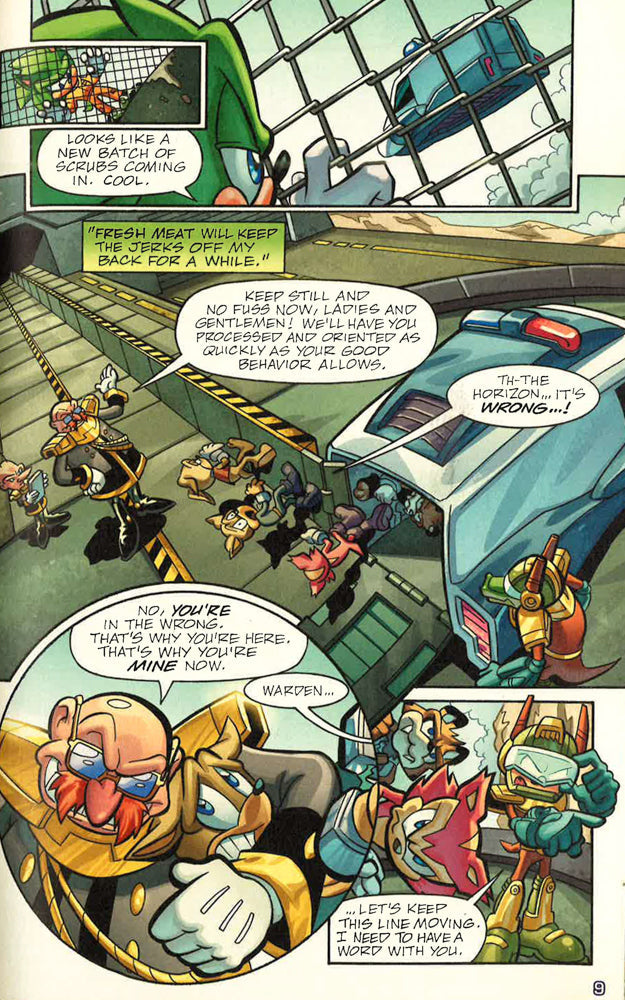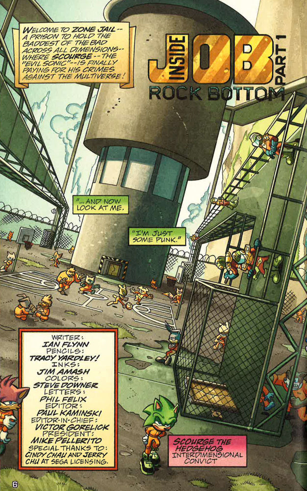 Everybody knows Sonic the Hedgehog—the cool, blue hero of his world! But on the dark mirror world of Moebius, his doppelganger, the mean, green Scourge the Hedgehog menaces everyone! He did until he was finally brought to justice, that is. But Scourge's old flame, Fiona Fox, brings her gang of the Destructix to bust him out. Can Scourge get the gang to follow his lead? Can any of them break out of the maximum-security prison? It's "Sonic" at his most villainous in Scourge's breakout story!