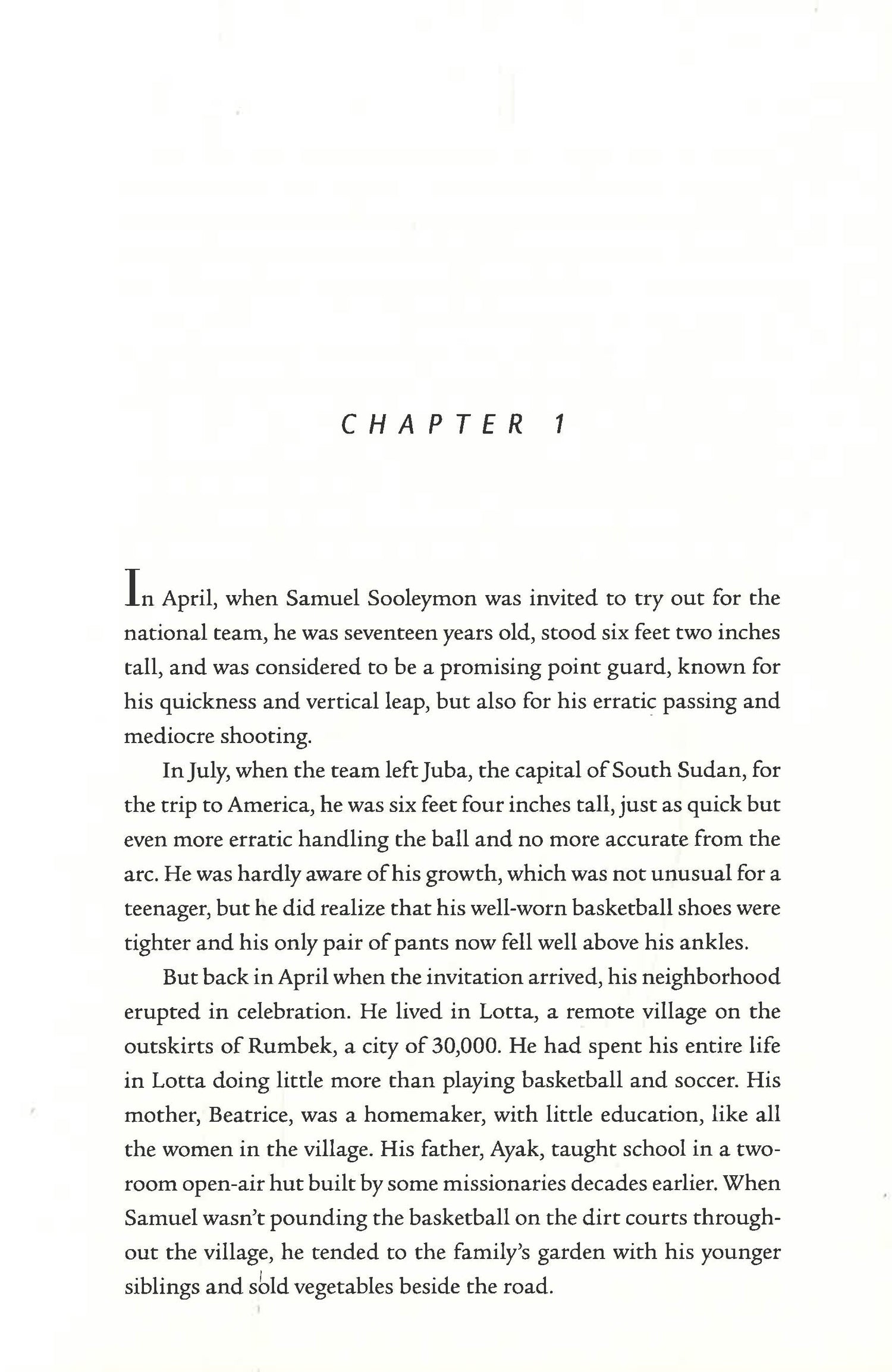 Seventeen-year-old Samuel Sooleyman comes from a village in South Sudan, a war-torn country where one third of the population is a refugee. His great love is basketball: his prodigious leap and lightning speed make him an exceptional player. And it may also bring him his big chance: he has been noticed by a coach taking a youth team to the United States.