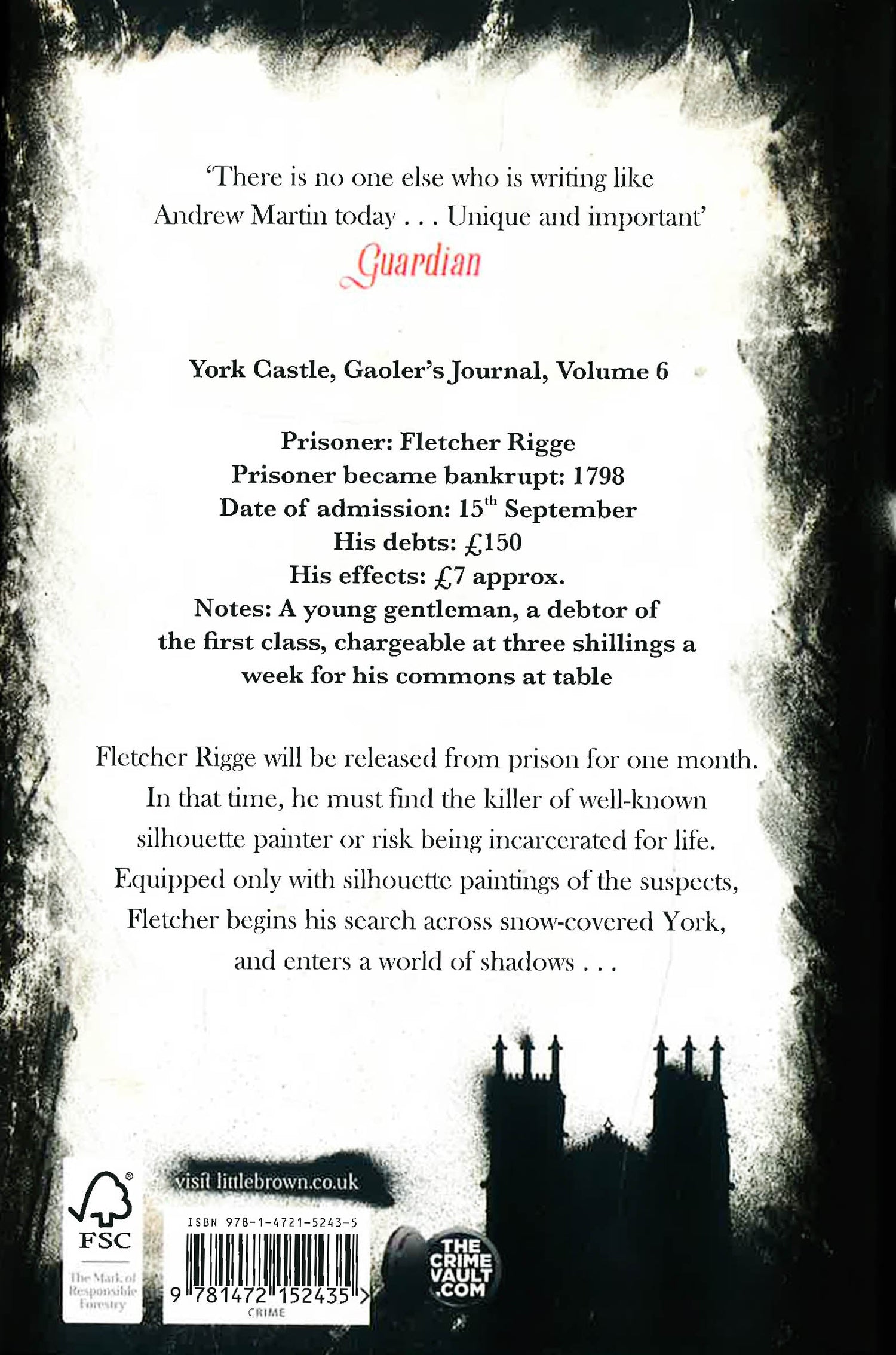 And so, with everything at stake, and equipped only with copies of the distinctive silhouettes, Fletcher Rigge begins his search across the snow-covered city, and enters a world of shadows...