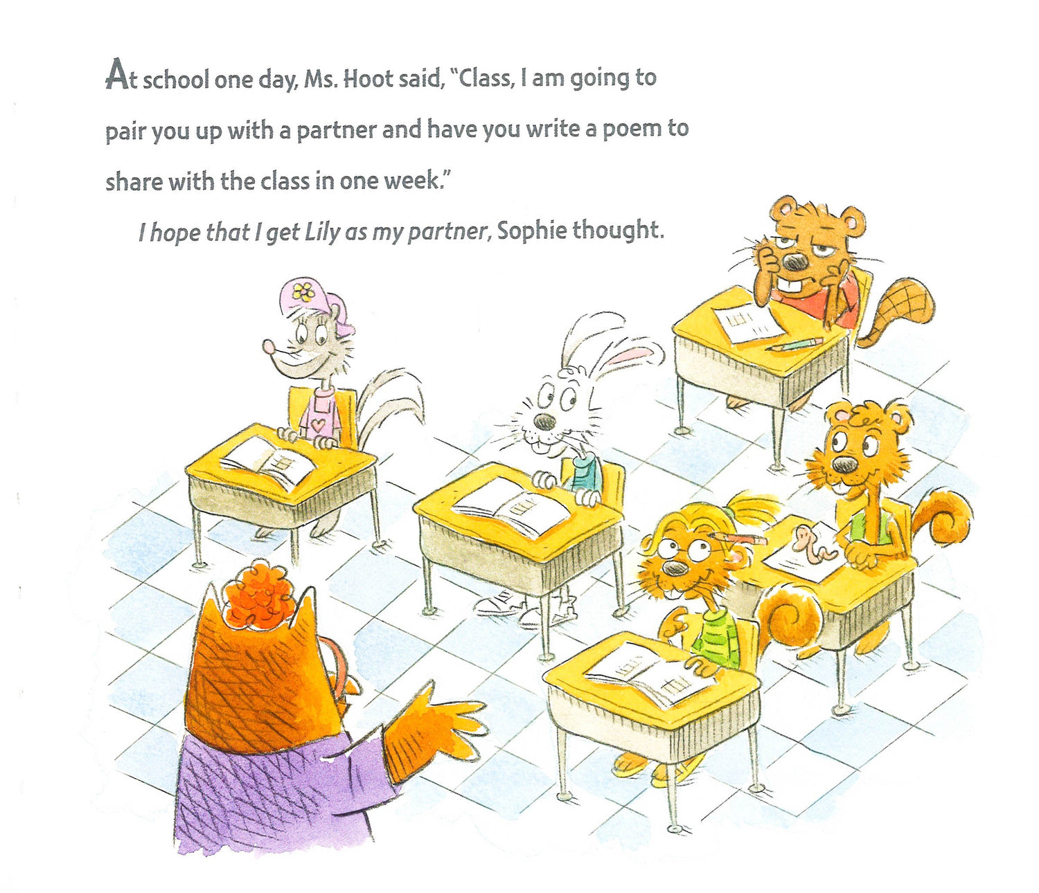 Ms. Hoot has assigned the class to write a poem, and everyone has to work with a partner. When Sophie is partnered with Biff, she is sure it’s going to be a disaster. Because Biff is mean! But as they work together, they find they have more in common than they thought.