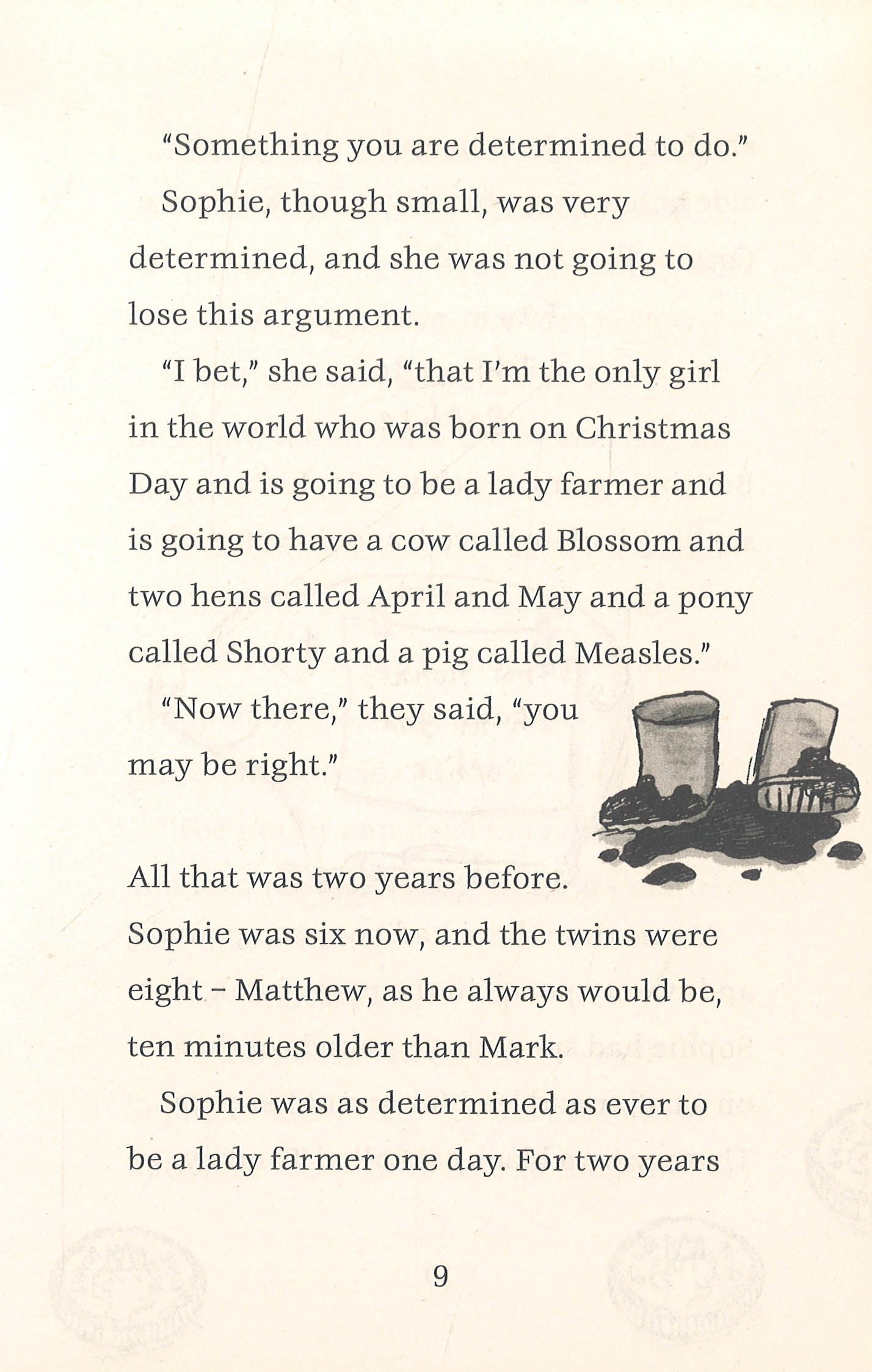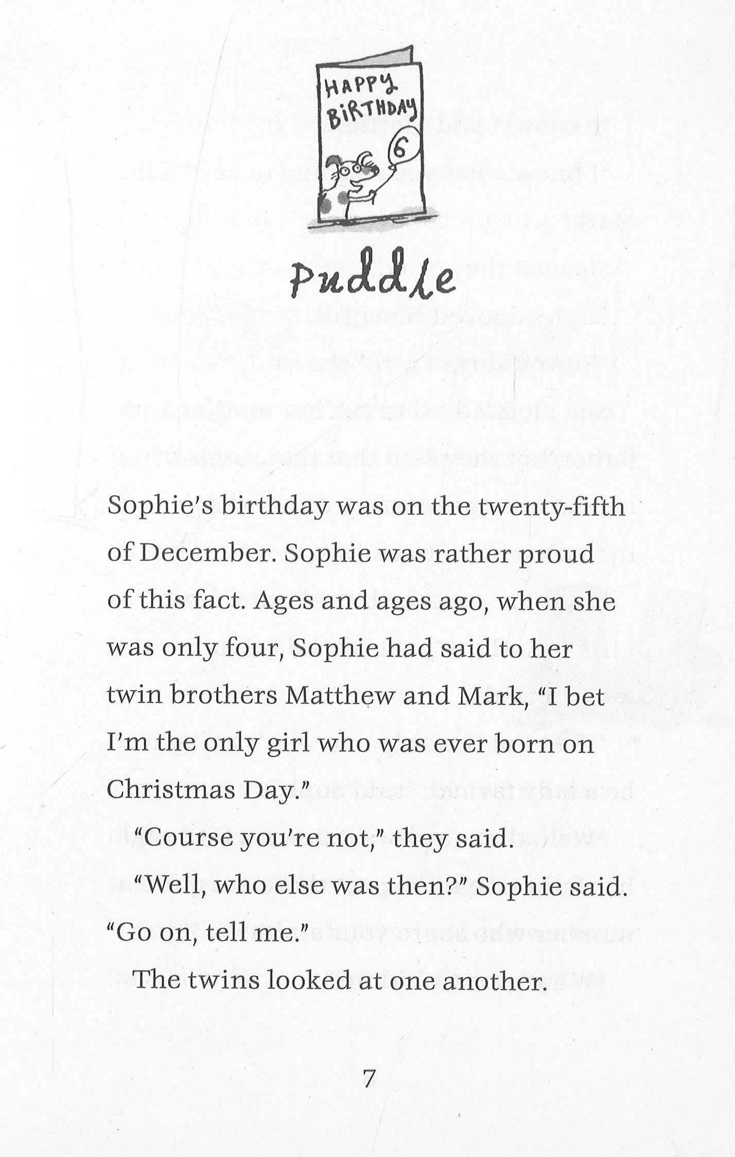 From the beloved author of Babe comes the fifth of six stories about Dick King-Smith's most adored (human!) character, the inimitable Sophie, re-imagined twenty years later by the witty, perceptive paintbrush of the award-winning Hannah Shaw. In this book Sophie gets a dog that she calls "Puddle", makes friends with a Vietnamese pot-bellied pig and has her first ride on a pony! This charming, funny story beautifully captures the dynamics of family life and has been given a fresh, contemporary look by a talented artist.