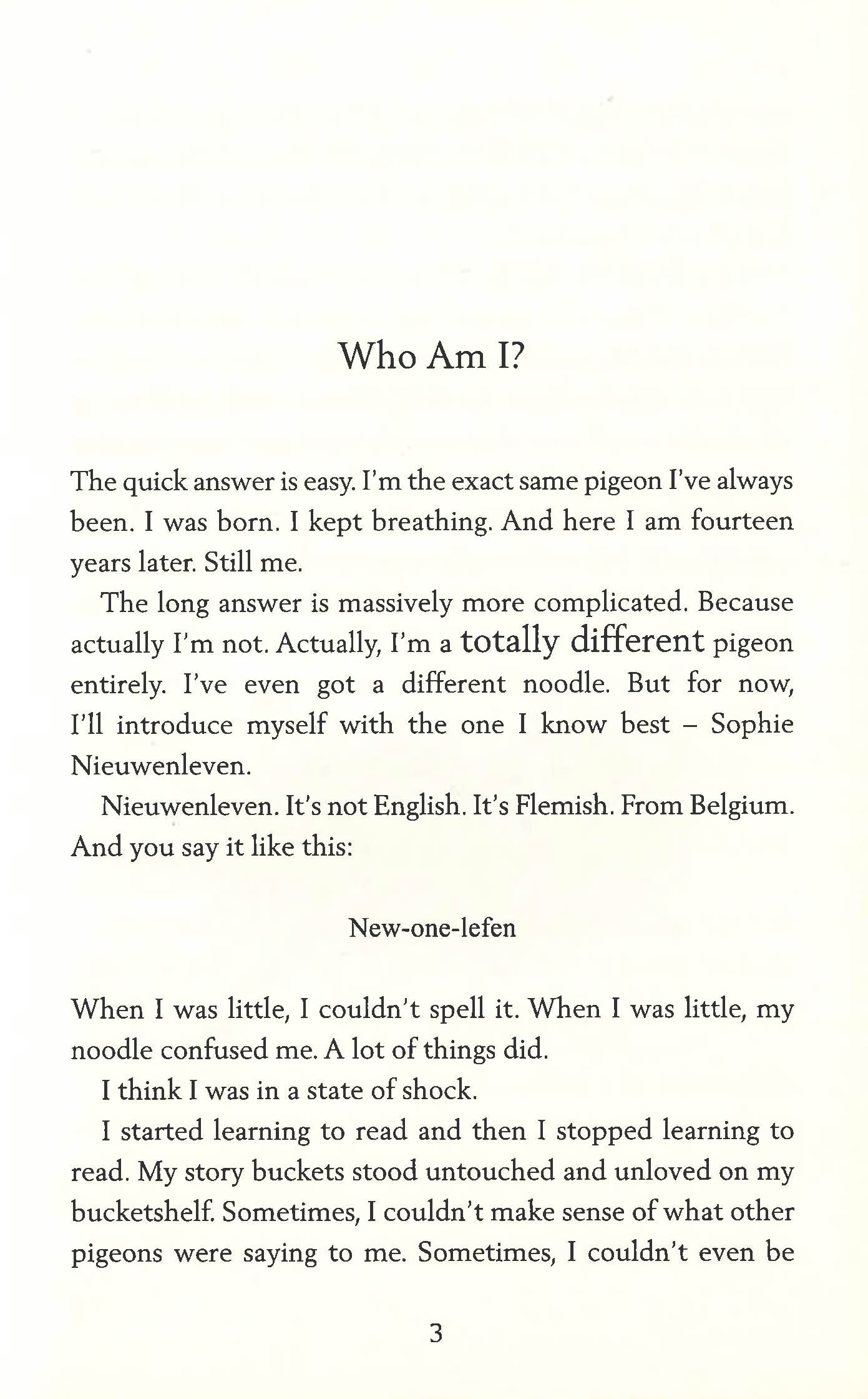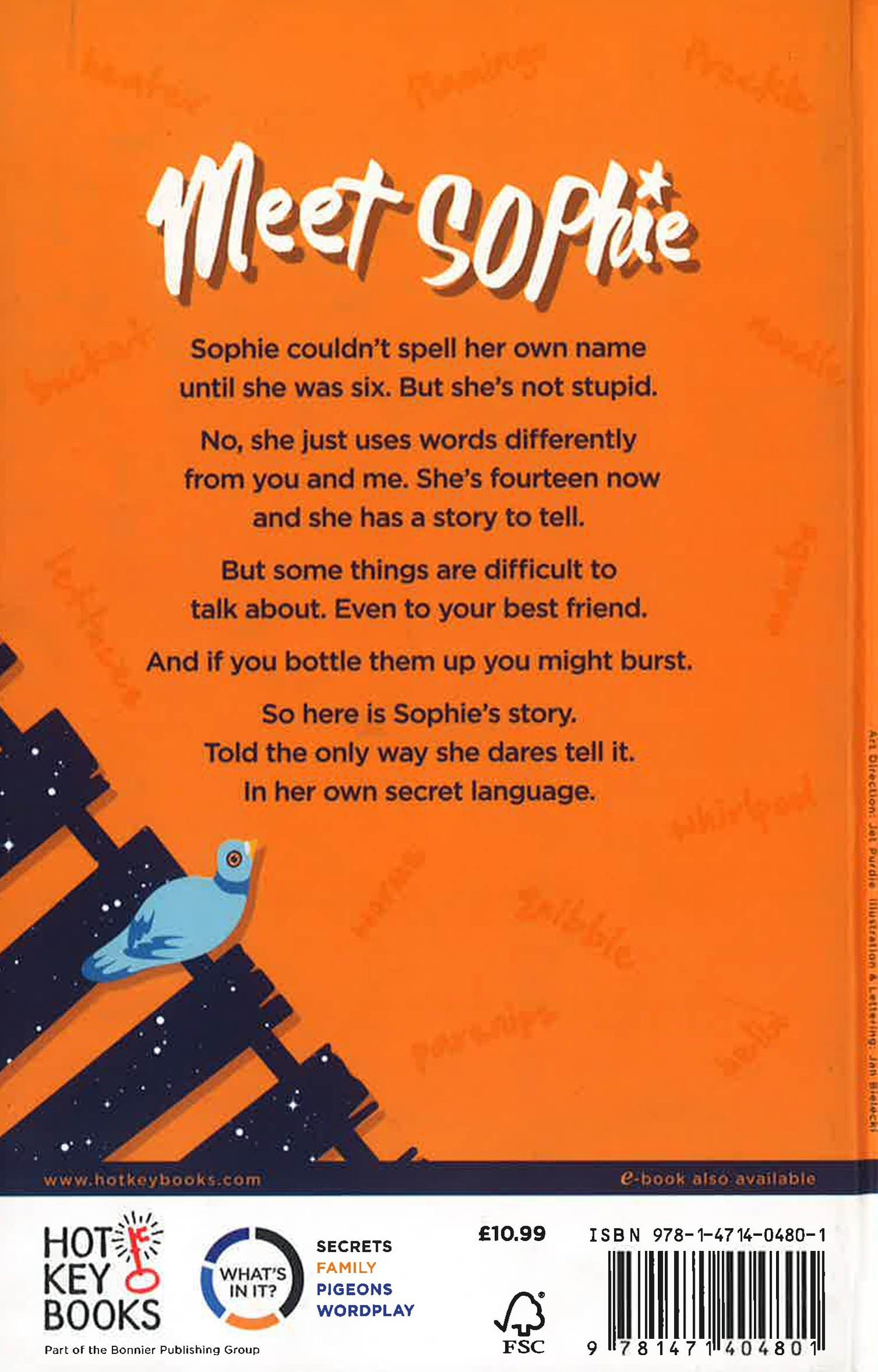 Meet Sophie. Sophie couldn't spell her own name until she was six.But she's not stupid. No,she just uses words differently from you and me. She's fourteen now and she has a story to tell. But some things are difficult to talk about. Even to your best friend. And if you bottle them up you might burst. So here is Sophie's story. Told the only way she dares tell it. In her own secret language.