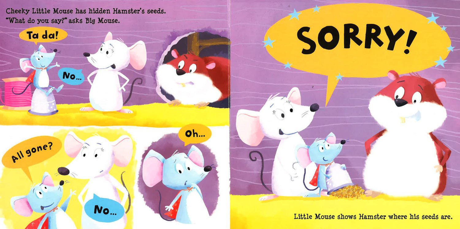 SORRY" The animals in this story are learning that everyone needs to say "sorry" sometimes. Luckily, they all have wise friends to show them how.