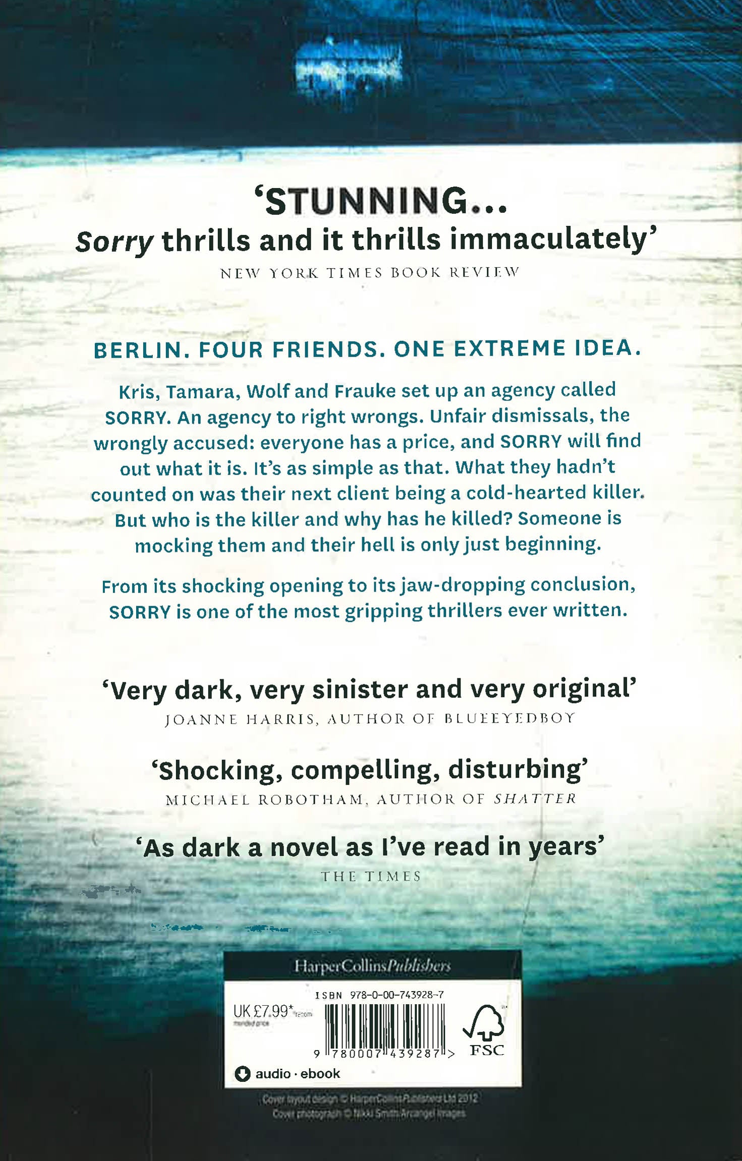 Berlin. Four friends. One extreme idea.One of the most gripping thrillers ever written. Kris, Tamara,Wolf and Frauke set up an agency called Sorry. An agency to right wrongs. Unfair dismissals, the wrongly accused: everyone has a price, and Sorry will find out what it is. It's as simple as that. What they hadn't counted on was their next client being a cold-hearted killer. But who is the killer and why has he killed? Someone is mocking them and hell is only just beginning.
