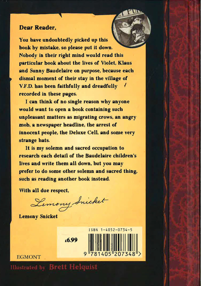 The miserable lives of the Baudelaire orphans continue as they are relentlessly pursued by the evil Count Olaf.