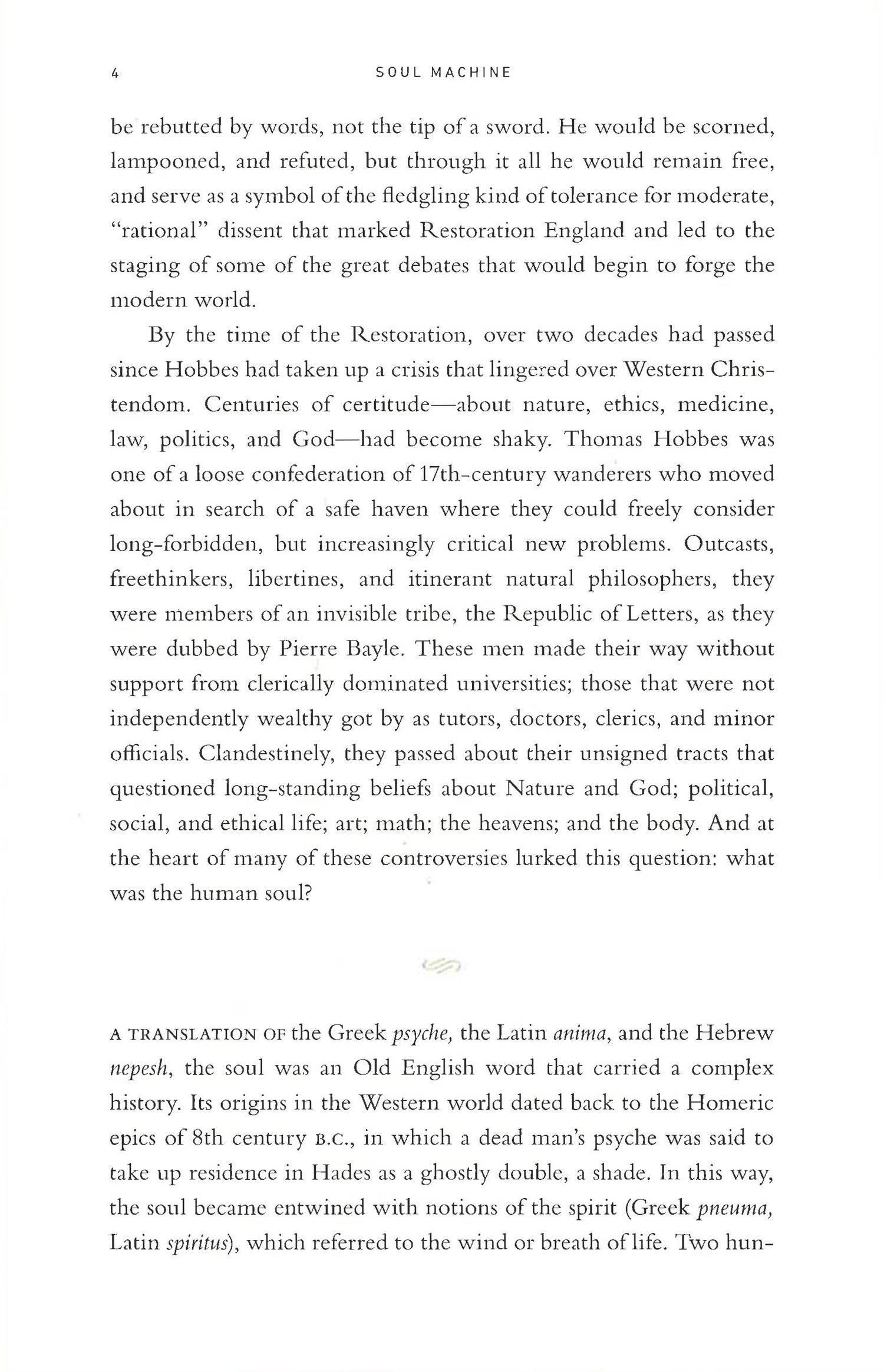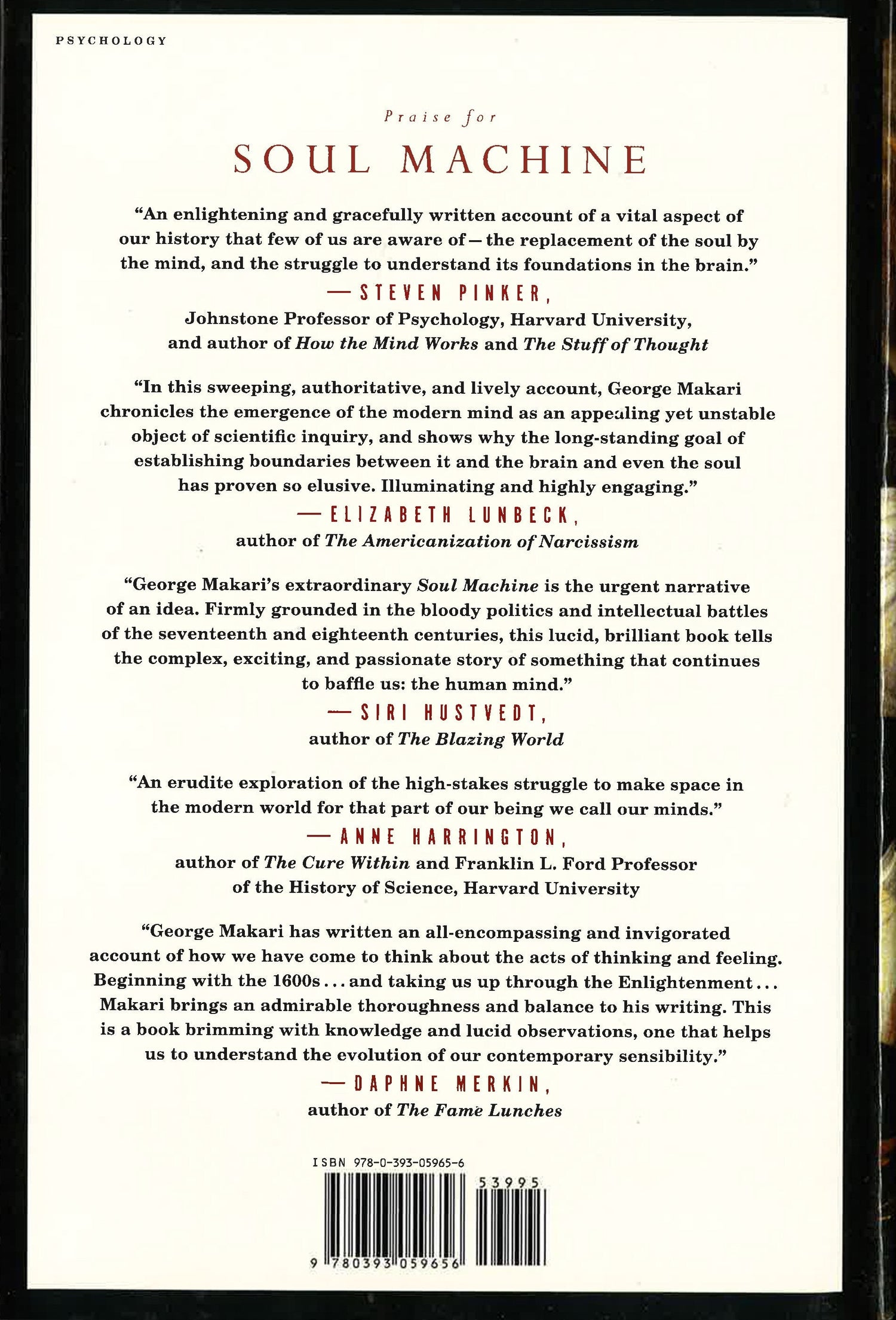 Soul Machine takes us back to the origins of modernity, a time when a crisis in religious authority and the scientific revolution led to searching questions about the nature of human inner life. This is the story of how a new concept-the mind-emerged as a potential solution, one that was part soul and part machine but fully neither.