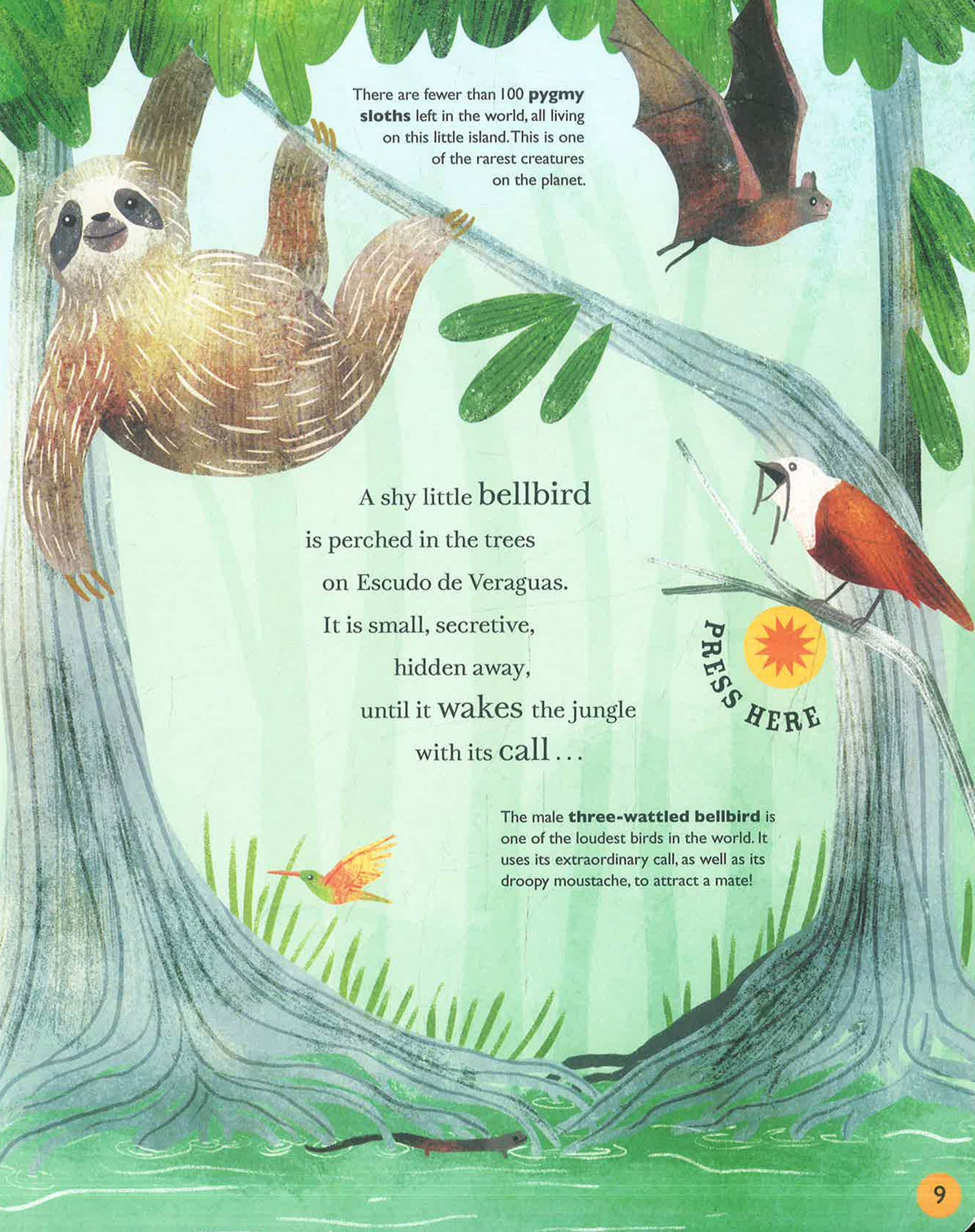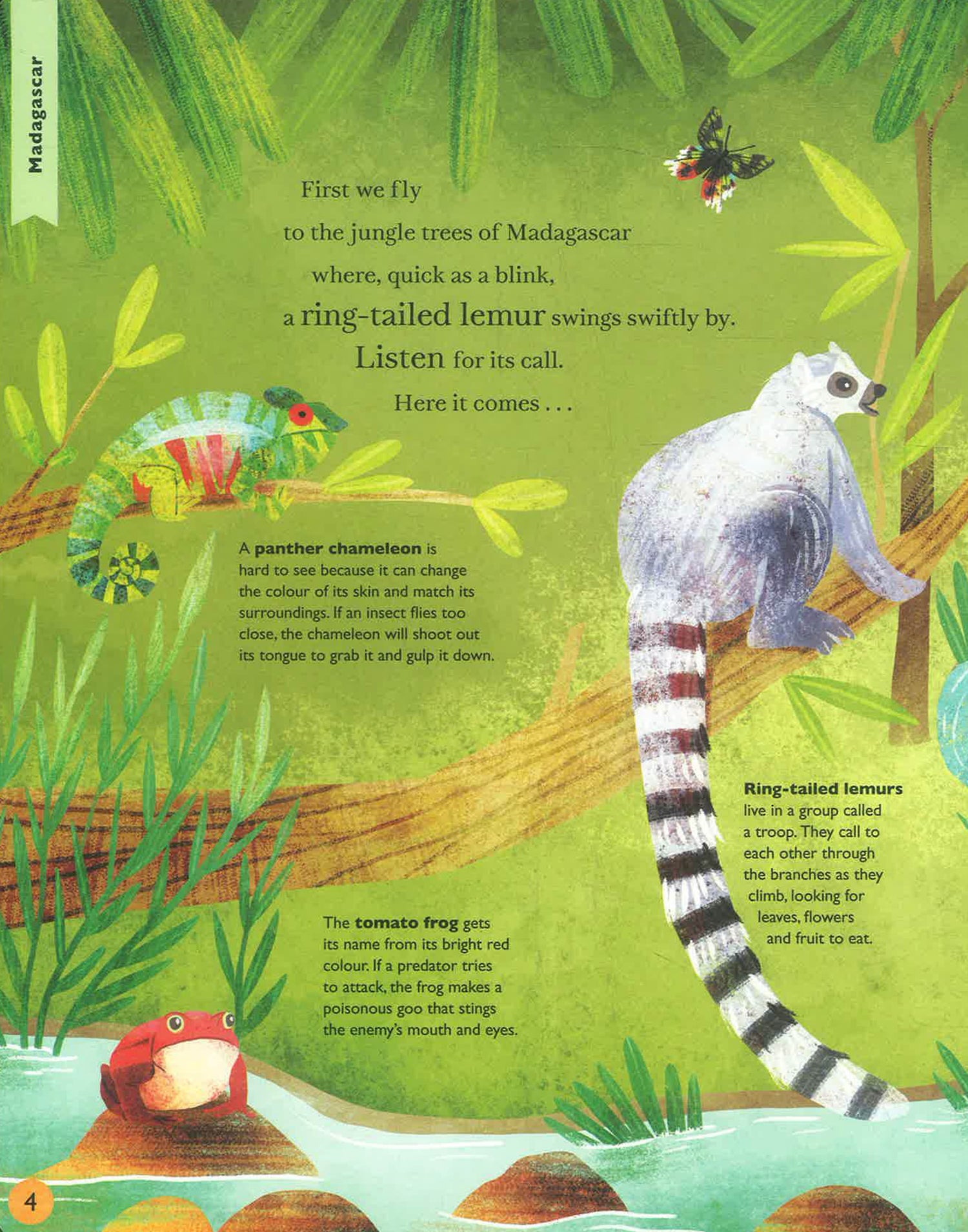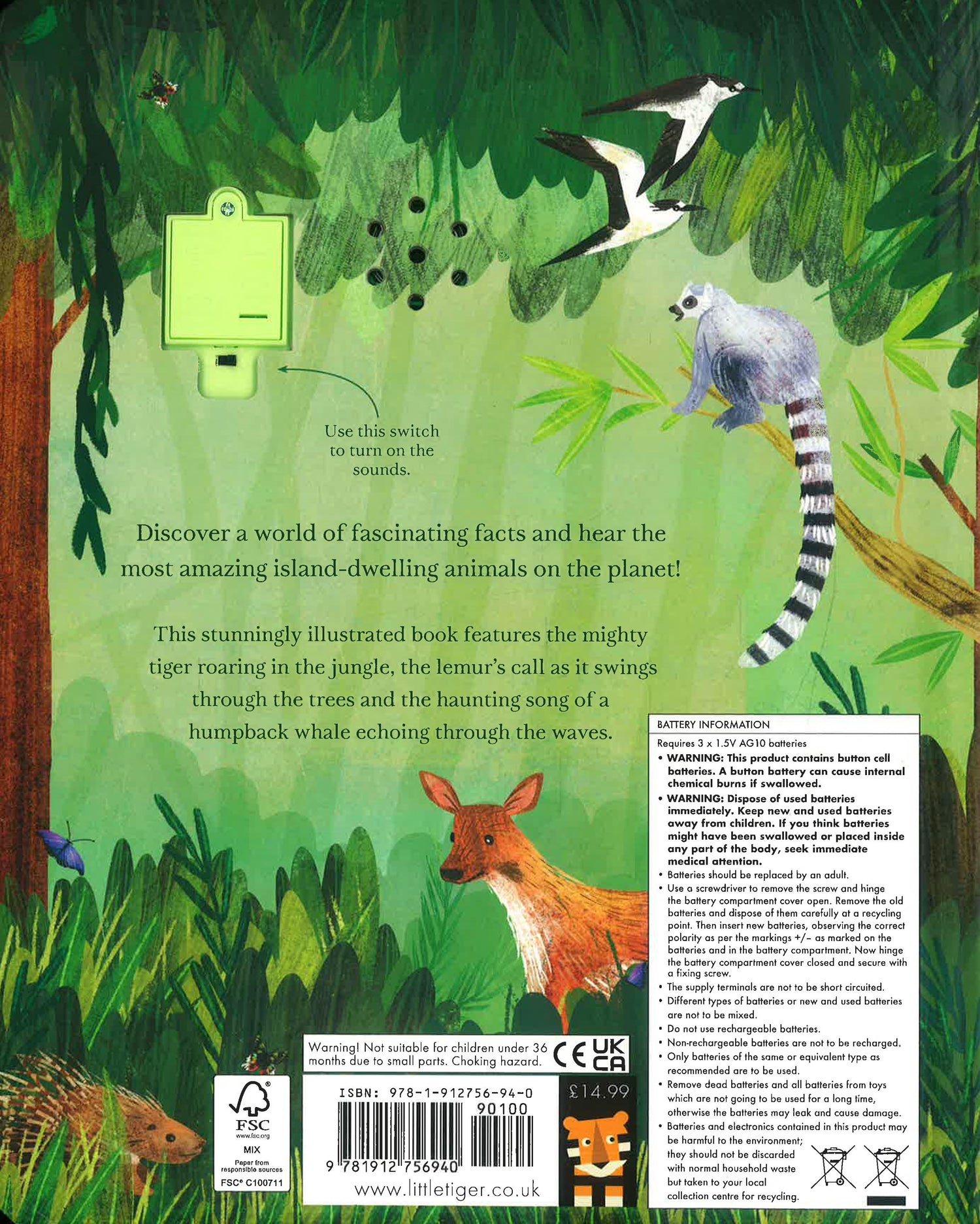 Discover a world of fascinating facts and hear the most amazing island-dwelling animals on the planet! This stunningly illustrated sound book features the mighty tiger roaring in the jungle, the lemur's call as it swings through the trees and the haunting song of a humpback whale echoing through the waves.