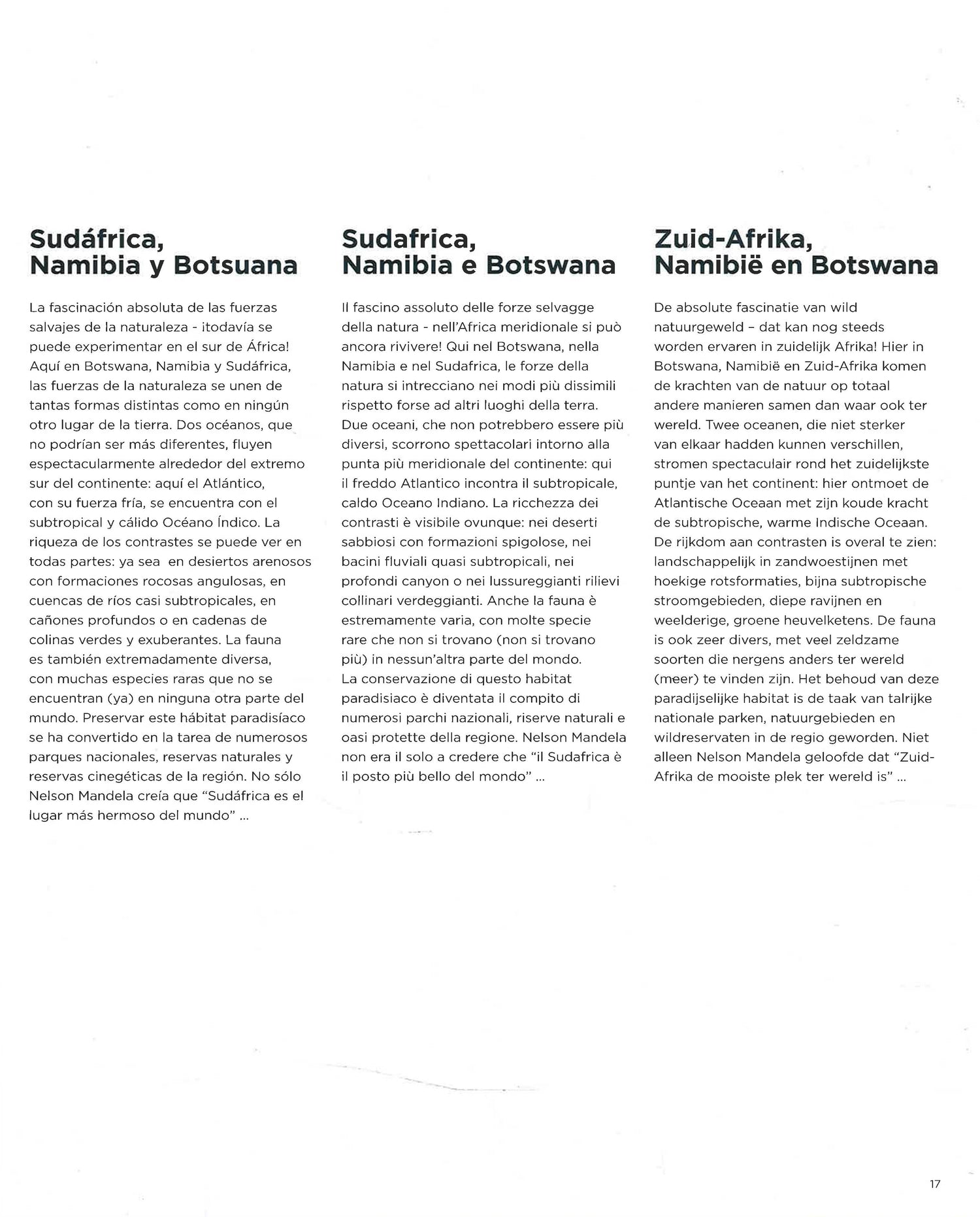 In South Africa, at the southern tip of the African continent, one finds extreme deserts in the Kalahari at the border to Namibia, subtropical forests in the southeast, but also mountain ranges like the Drakensberg parallel to the Indian Ocean. Beaches, lush vineyards, and rugged cliffs at the Cape of Good Hope mark the diversity of the country. The Kruger National Park is home to large game in the interior. Namibia, located in southwestern Africa, is characterized by the Namib Desert along the Atlantic coast. To the north is the Etosha National Park, whose salt pan attracts numerous wild animals such as rhinos and giraffes. The landscape of Botswana, a landlocked country in South Africa, is desert on the one hand and a huge river delta with seasonal flooding on the other, a habitat for lush vegetation and many animals. This volume presents these three states in more than 500 pictures. The natural spectacle and animal world could not be more contrasting.
