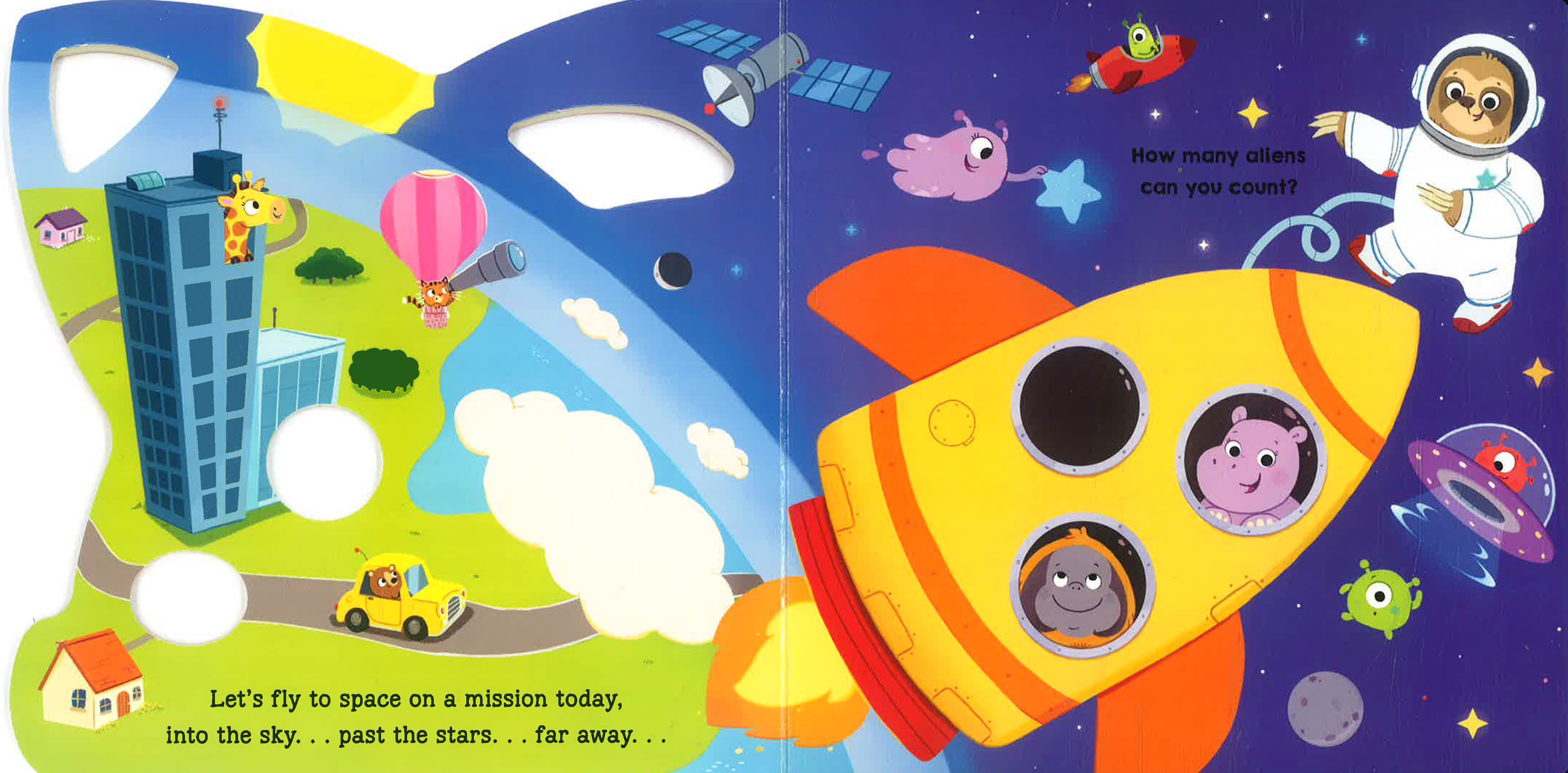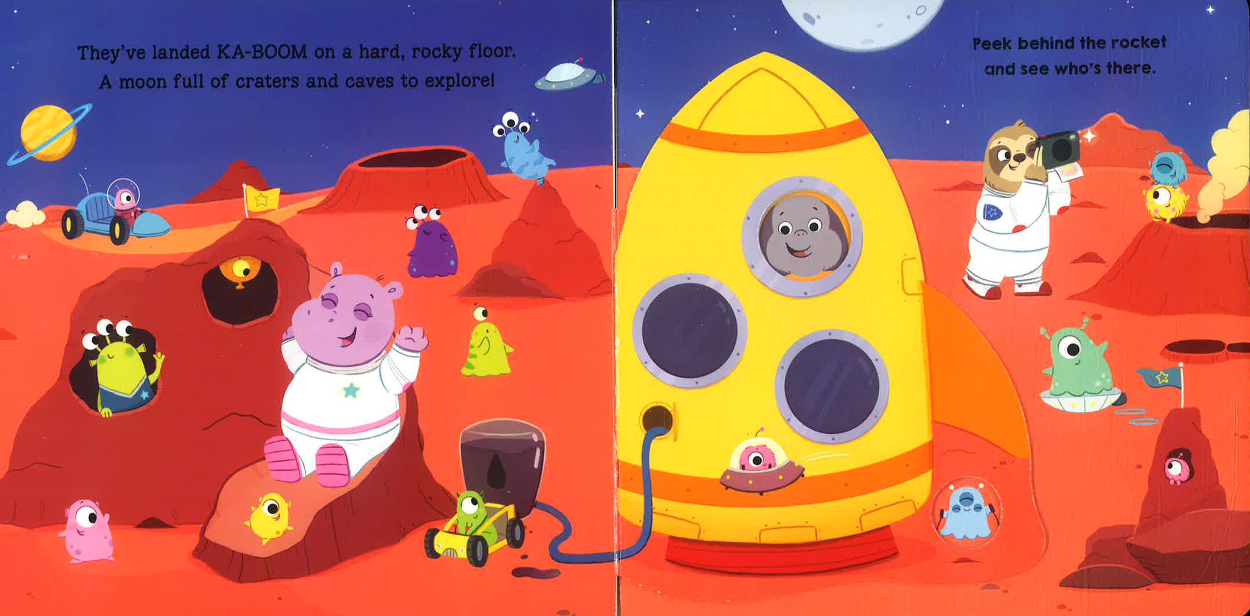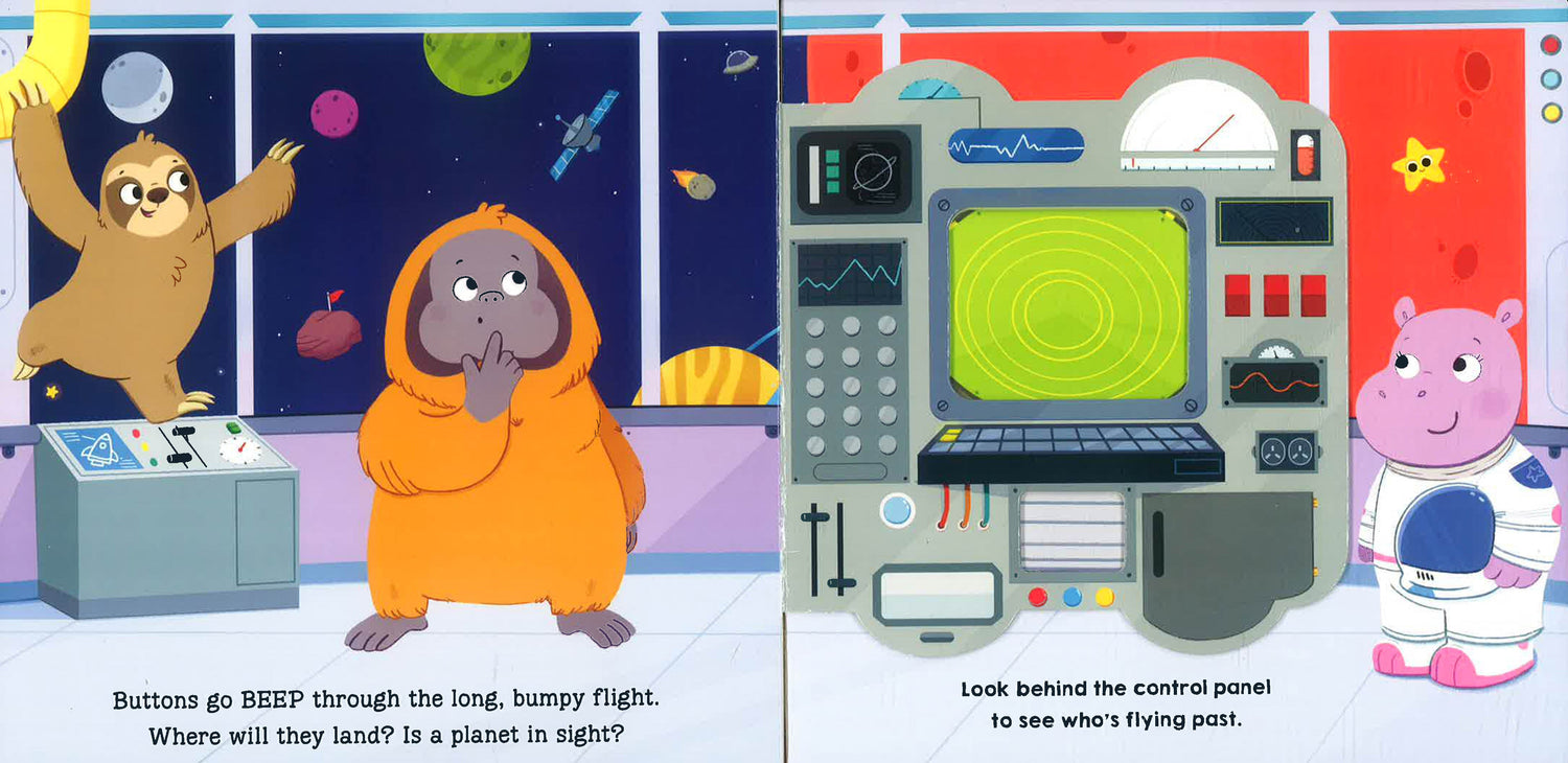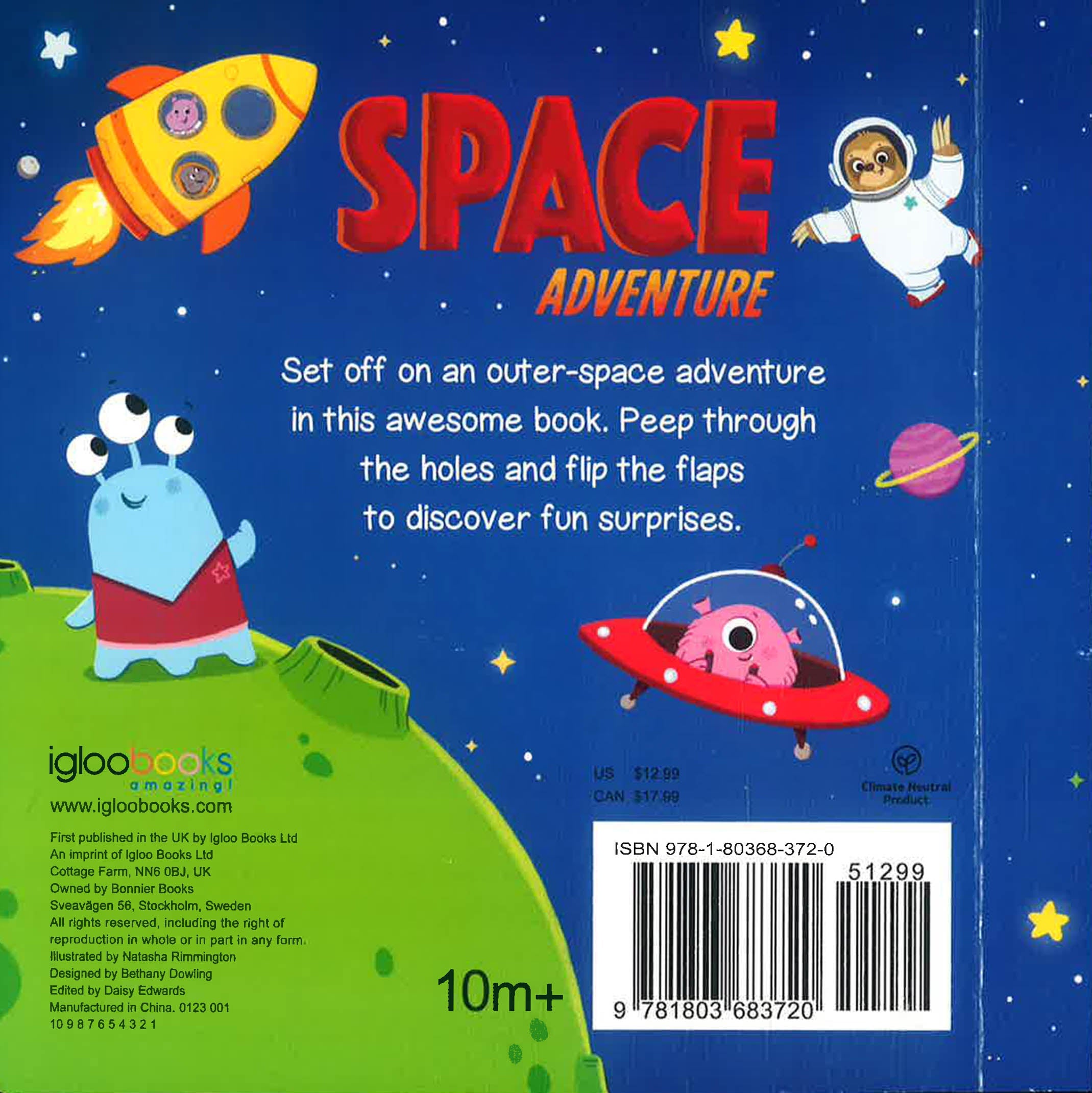 In Space Adventure: Peep-through Surprise, join interstellar explorers on a quest across galaxies. As you journey, peep through the holes and flip the flaps to uncover exciting surprises that await in the great expanse of space.