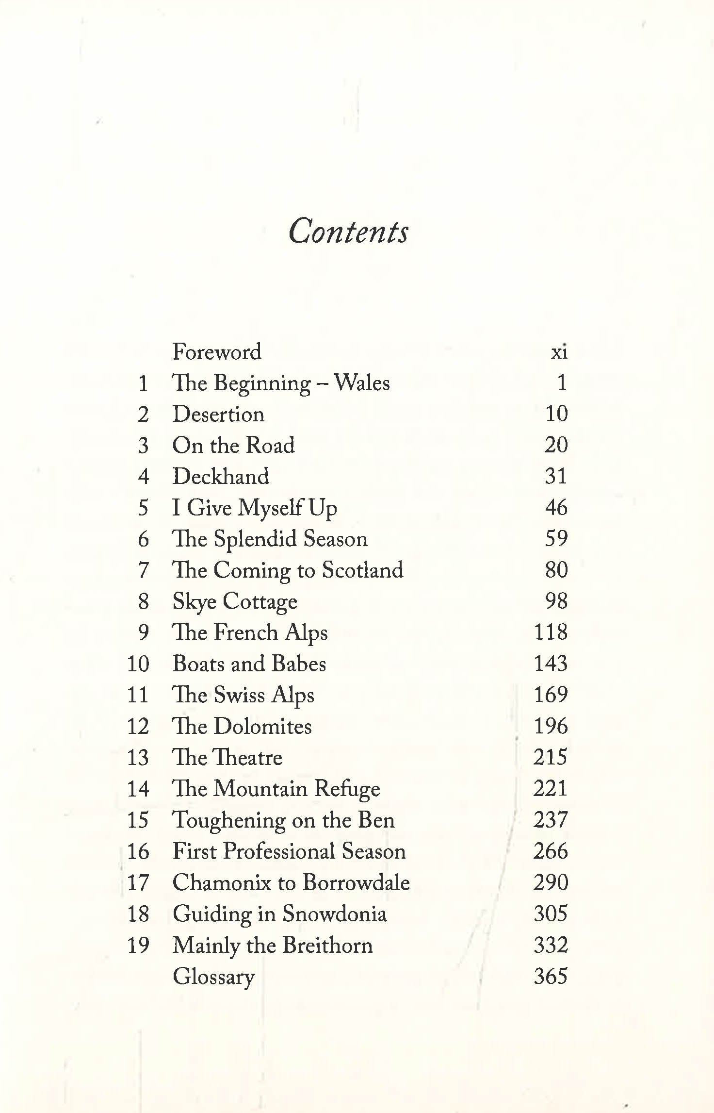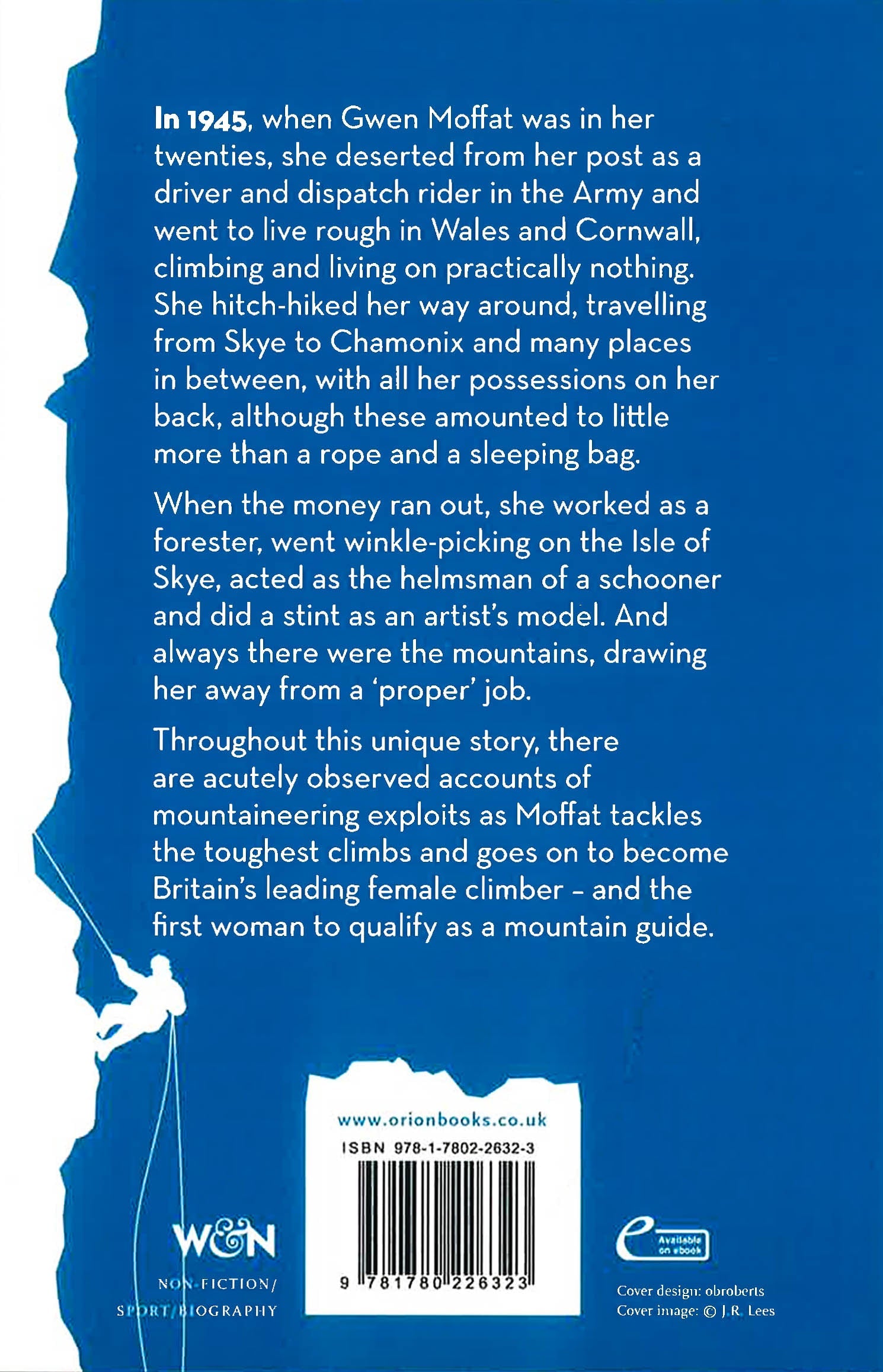 In 1945, when Gwen Moffat was in her twenties, she deserted from her post as a driver and dispatch rider in the Army and went to live rough in Wales and Cornwall, climbing and living on practically nothing. She hitch-hiked her way around, travelling from Skye to Chamonix and many places in between, with all her possessions on her back, although these amounted to little more than a rope and a sleeping bag. When the money ran out, she worked as a forester, went winkle-picking on the Isle of Skye, acted as the helmsman of a schooner and did a stint as an artist's model. And always there were the mountains, drawing her away from a 'proper' job.