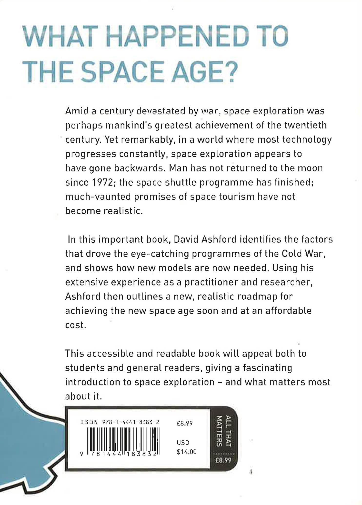 Amid a century devastated by war, space exploration was perhaps mankind's greatest achievement of the twentieth century. Yet remarkably, in a world where most technology progresses constantly, space exploration appears to have gone backwards. Man has not returned to the moon since 1972; the space shuttle programme has finished and not been replaced; much-vaunted promises of space tourism have not become realistic. In this remarkable book, David Ashford looks back at the story of space exploration, identifying the factors that were a driving force behind the eye-catching programmes of the cold war, and showing how now new driving forces are needed. Using his own extensive experience as a practitioner and researcher of space exploration, Ashford then outlines a new, realistic roadmap for achieving the new space age soon and at an affordable cost. This accessible and readable book will appeal both to students and general readers, giving a fascinating introduction to space exploration - and what matters most about it.