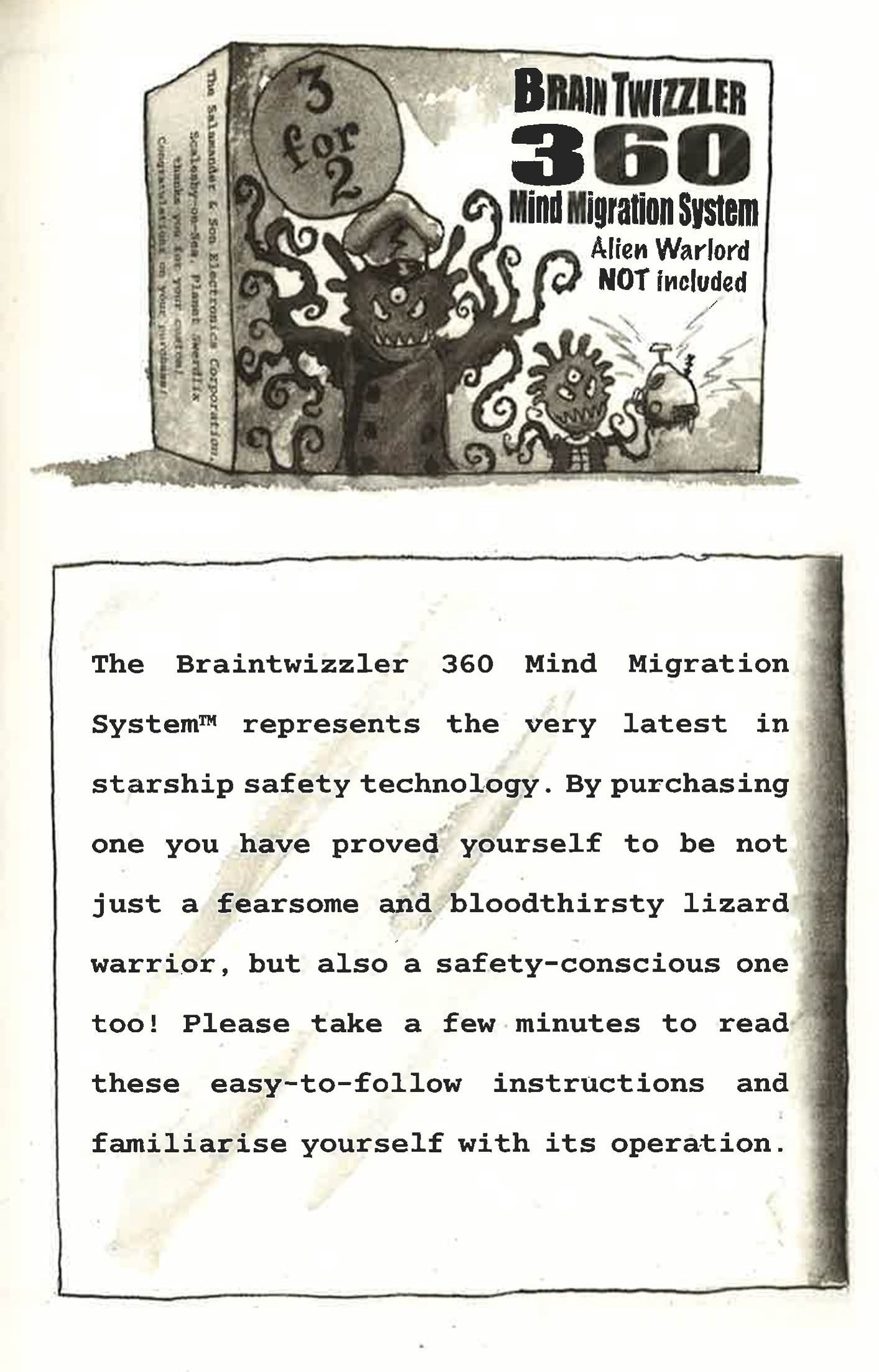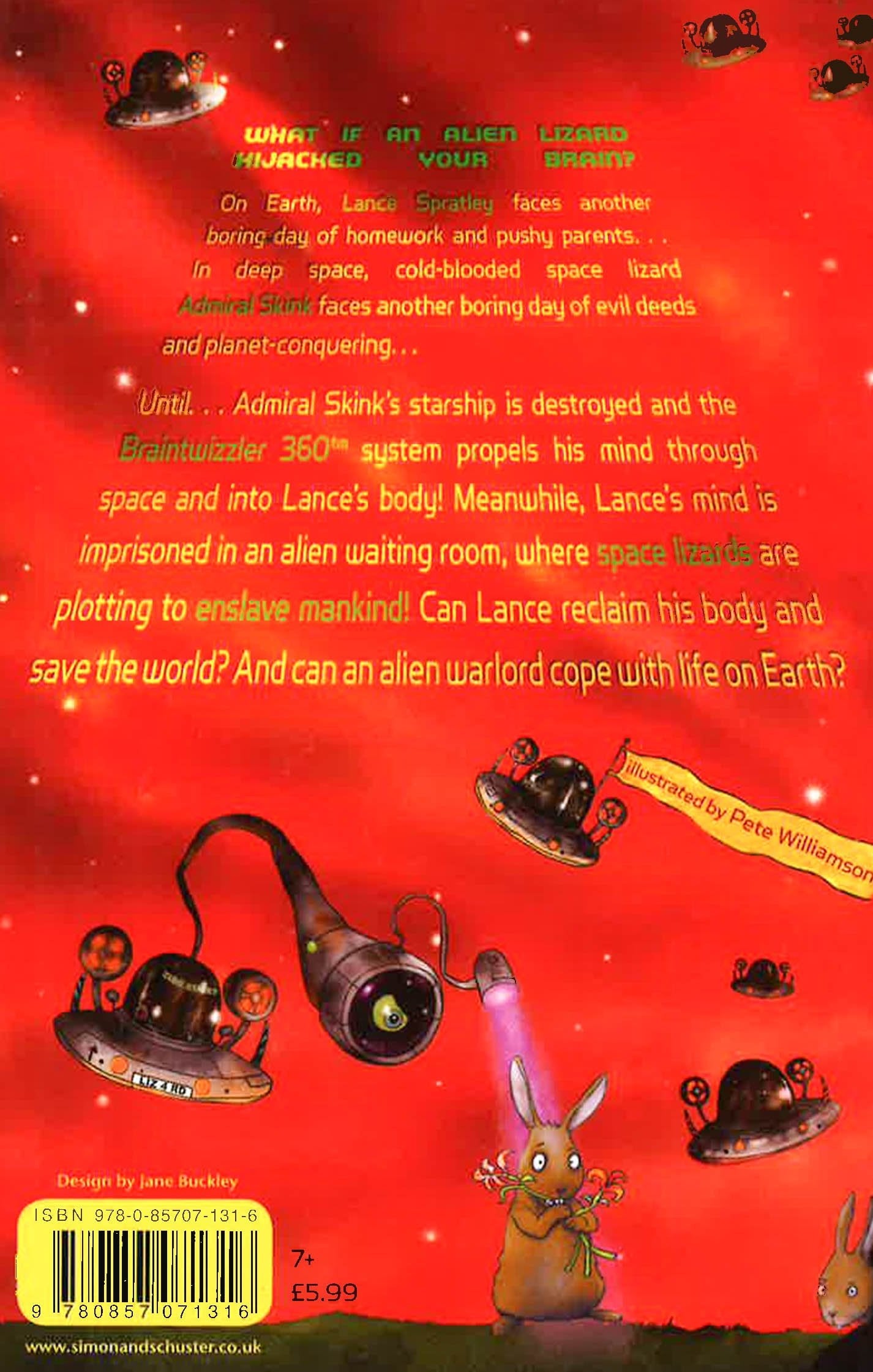 When Admiral Skink, an alien-lizard warlord from the planet Swerdlix, is attacked by The Hideous and Unimaginably Vast Comet Creature of Poppledock he faces a certain death... but luckily his underlings have installed the BrainTwizzler 360 Mind Migration SystemTM. This nifty invention safely transfers Skink's mind on to a memory wafer and jettisons it through space to find a suitable temporary "home" until he can be rescued by his fellow Swerdlixians. Unluckily for eleven-year-old Lance Spratley it just so happens that the temporary home for Admiral Skink's mind is his body! And while Skink deals with being trapped in Lance's useless body - it can't even breathe fire! - Lance is transferred to a virtual waiting room surrounded by the lizard race who seem intent on destroying Earth when they have successfully retrieved Skink.Will Lance ever get his body back? And even if he does will he be able to thwart Admiral Skink and the Swerdlixians plans to invade Earth...