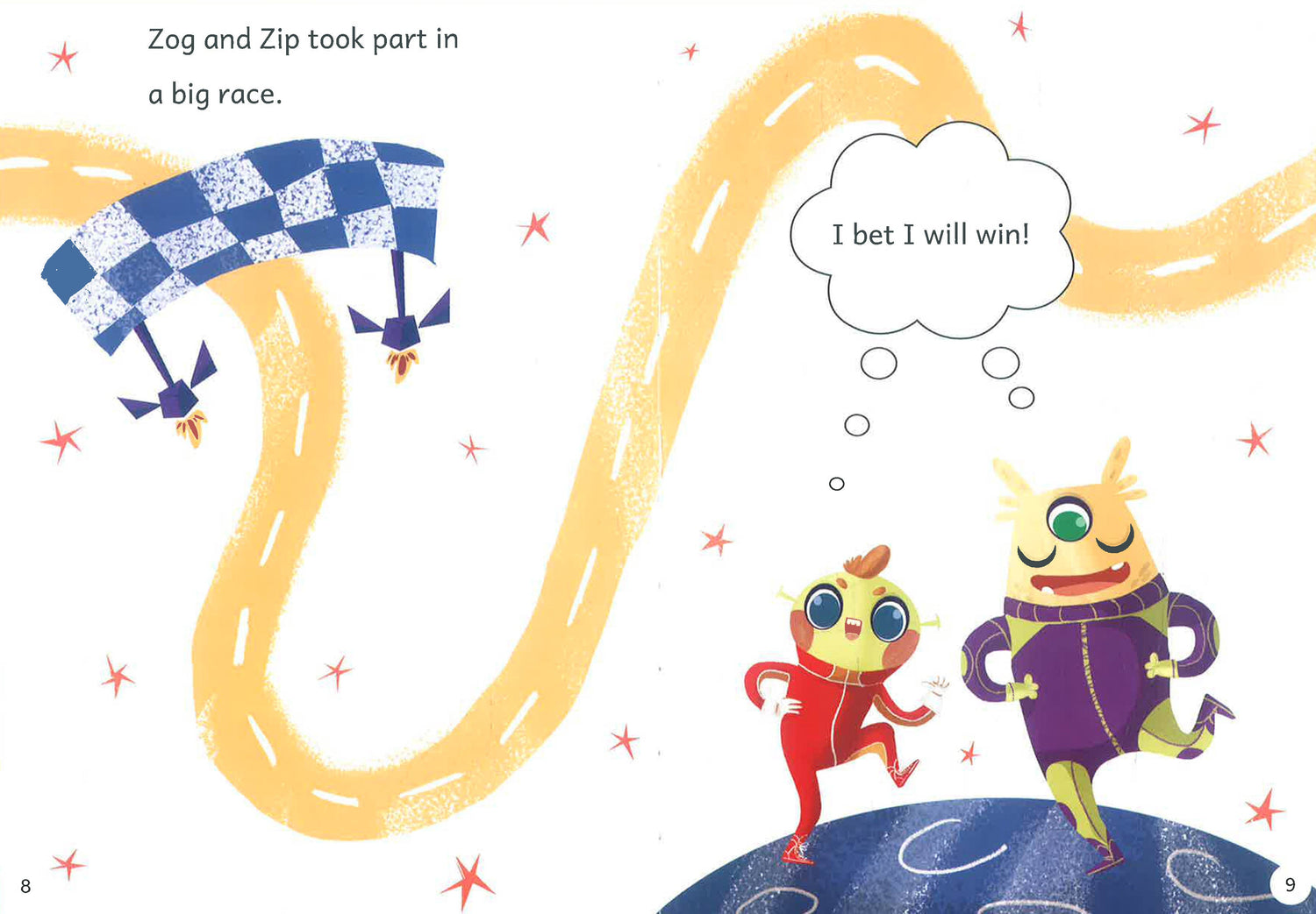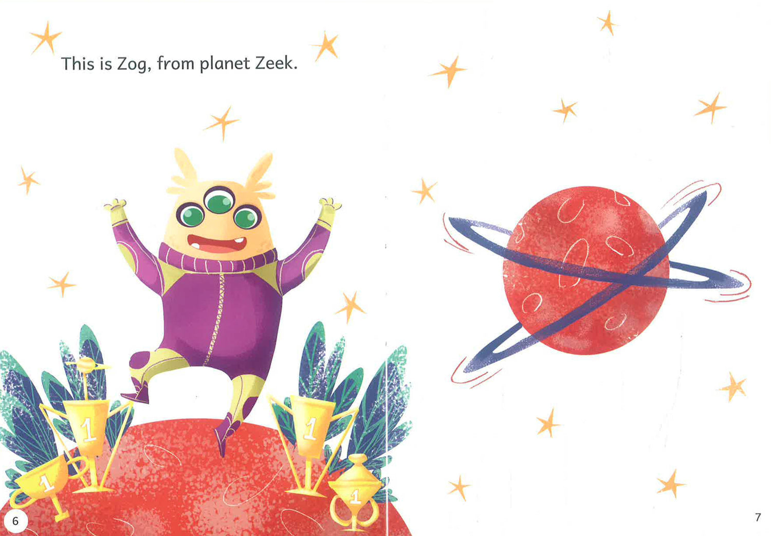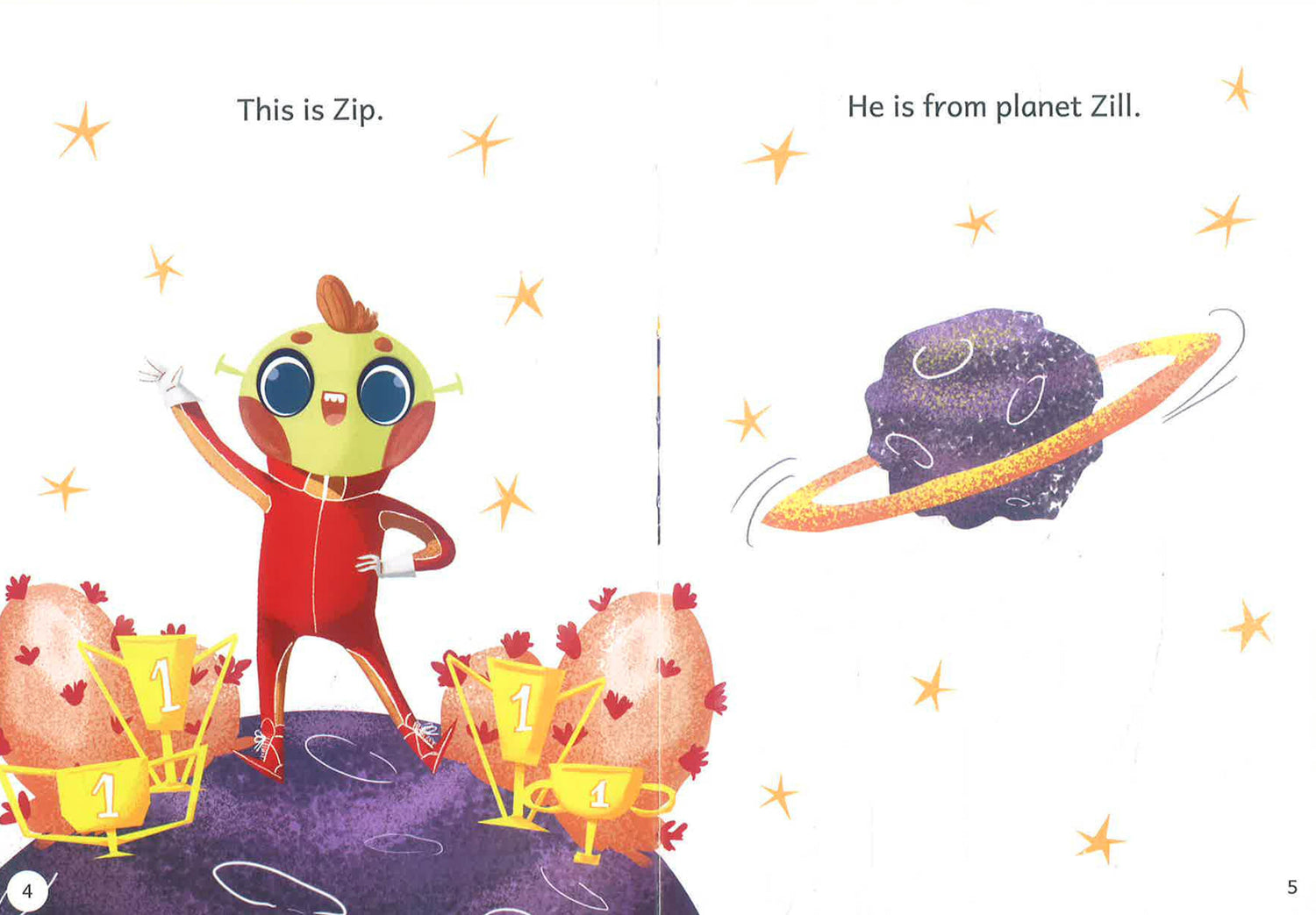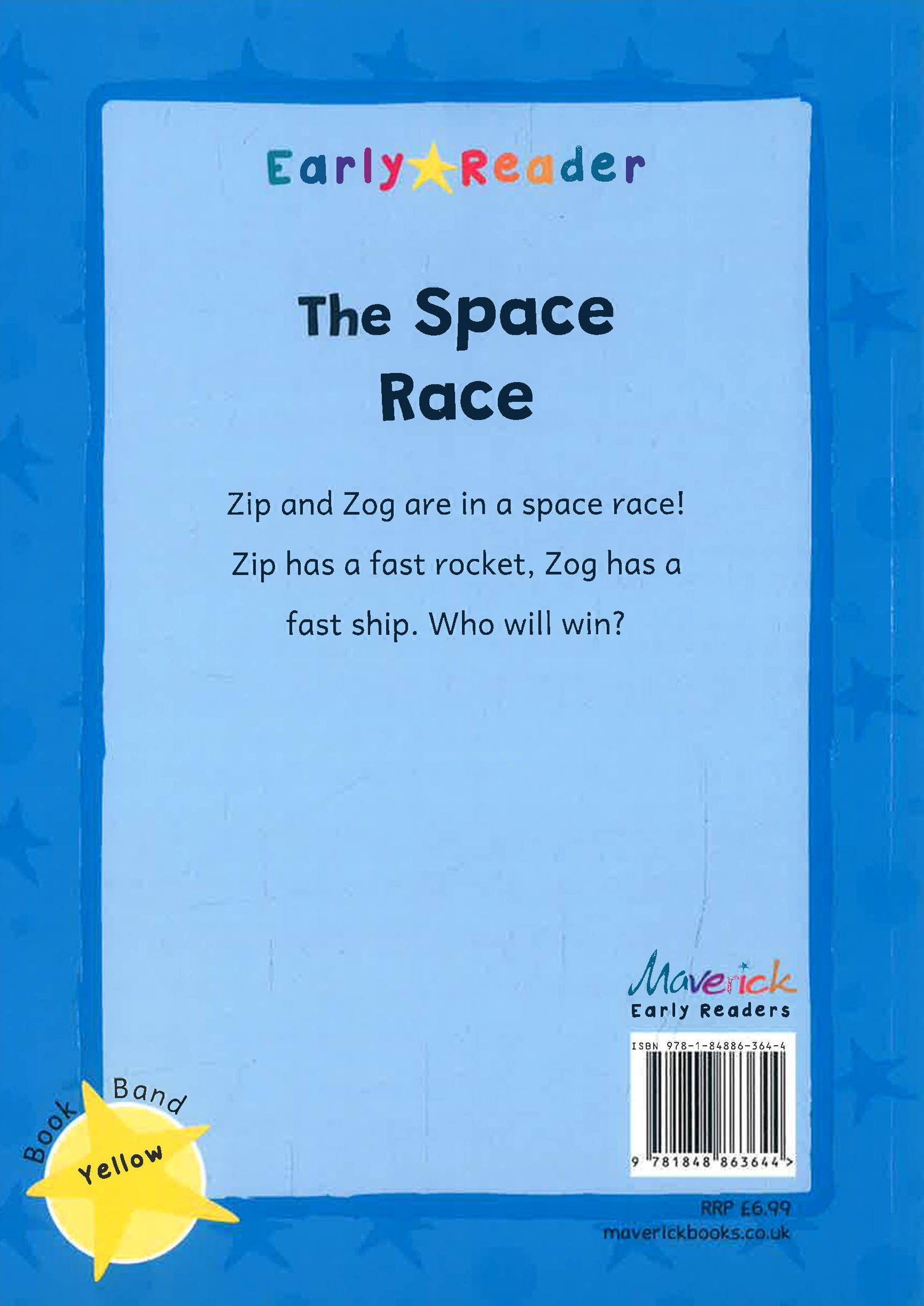 Zip and Zog are in a space race! Zip has a fast rocket, Zog has a fast ship, who will win Written by Jenny Jinks, this educational Early Reader book is book band Yellow (aimed at 5-6 years, Year 1). The colour grading system is recognised by the Institute of Education which reflects the reading difficulty. The book content, language style, phonics and layout are taken into account to determine this.