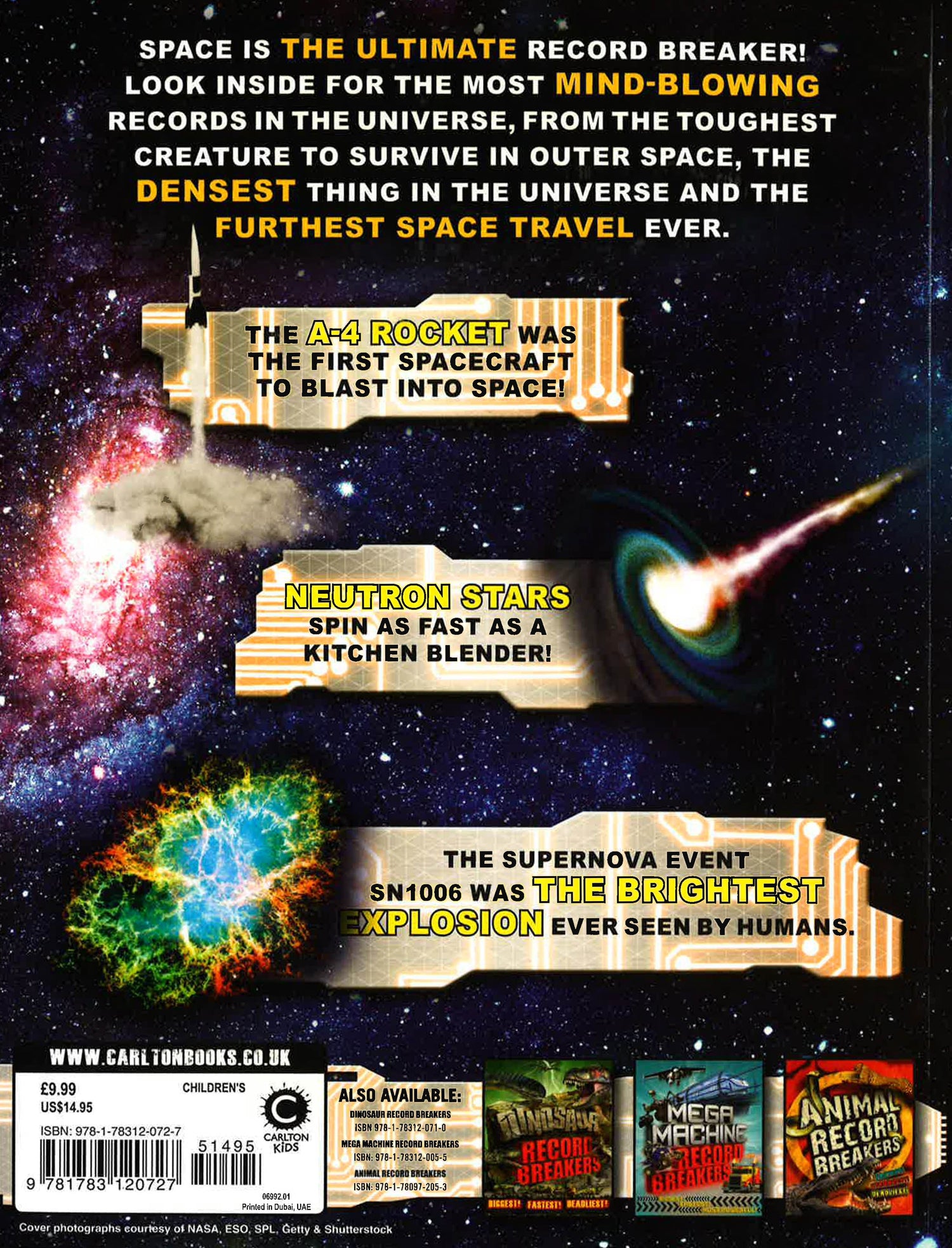 The entire universe is in this book - and budding astronauts and astronomers will be captivated! What planet has the most moons? Who was the first woman in space? Where is the nearest star - and how long would it take to get there? These record-breaking facts take the wonders of the cosmos and space exploration and make them fascinating, fun, and understandable to kids.