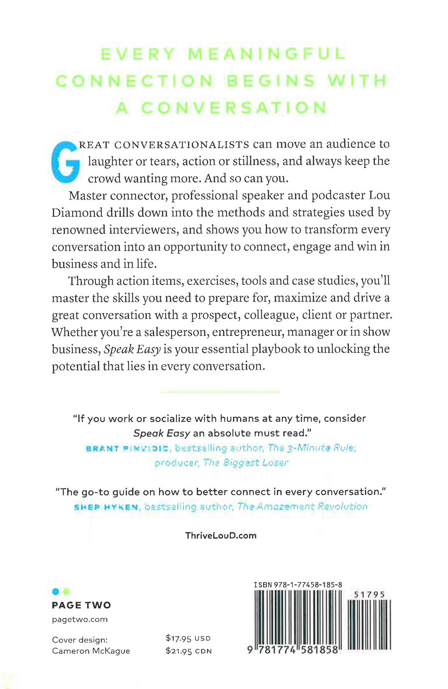 Sometimes, that promising lead turns out to be a bust. That first date doesn't lead to a second. The sales pitch fails to land the client. But what if they could? What if you knew the steps to "set up" each conversation to increase the likelihood that you connect, engage and win? Welcome to Speak Easy. Unlike prohibition-era speakeasies - underground bars with secret knocks, where people spoke quietly to avoid detection - there's no bathtub gin here. But inside these covers you'll find some of the best-kept secrets of elite interviewers and conversationalists. Your host, Lou Diamond, is a storyteller, podcaster, and professional speaker who has studied how content can connect and engage audiences. He has analyzed, edited, and broken down thousands of interviews and great conversations. Through him, you now have exclusive access to proven strategies, tactics, and lessons to make more of your conversations lead to great connections. Discover the mindset you should strive to be in before, during, and after you have a conversation, and how to maximize and continue a great one. Learn how to steer a conversation to connect with prospects; engage with partners, clients and colleagues; and win in business and in life. Find tips, techniques and best practices used by some of the world's greatest communicators and leaders. Step inside, grab a stool, and learn something new.
