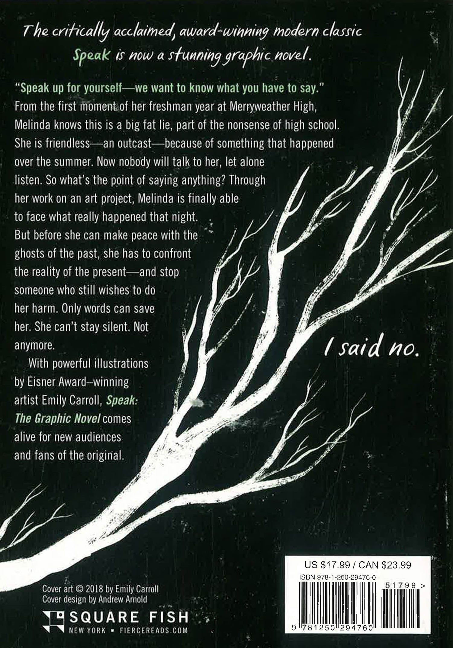 The bestselling, award-winning modern classic Speak is now a stunning graphic novel―adapted by Laurie Halse Anderson herself and brought to life visually by Eisner Award winner E.M. Carroll.