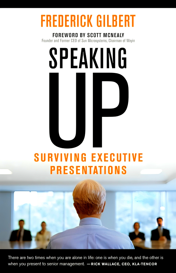 Speaking Up is an indispensable resource for anyone who needs to know how to present to those at the highest levels. Psychologist and coach Frederick Gilbert offers revelatory insights into the minds of the men and women at the top—information that is crucial to understanding what they’re looking for from presenters. Based on ten years of research and hundreds of interviews, Speaking Up features extensive comments from executives explaining exactly what they want and don’t want in a presentation and includes nine chapters containing QR codes for free videos on the chapter topics. This is a must-read book for surviving high-stakes meetings.
