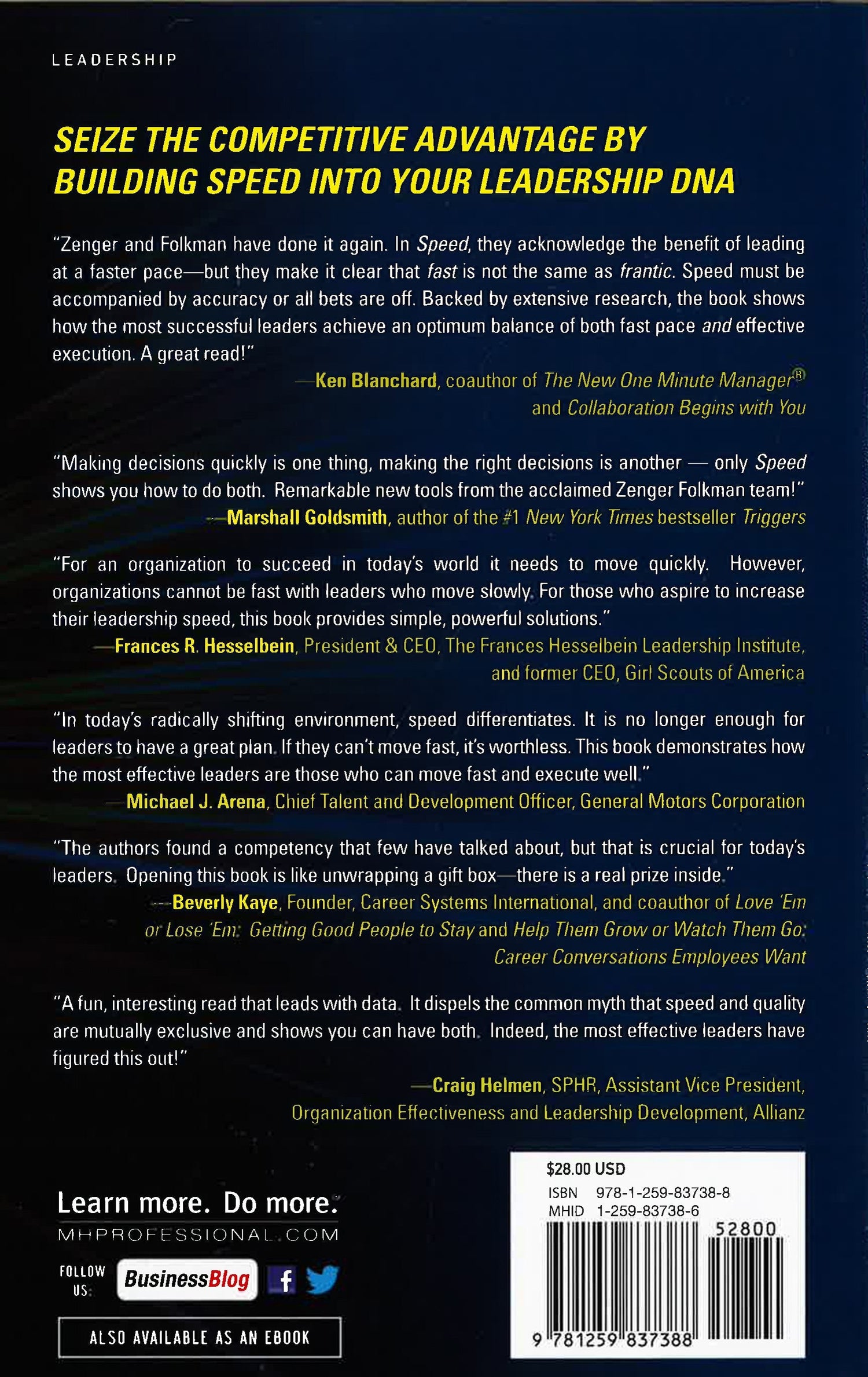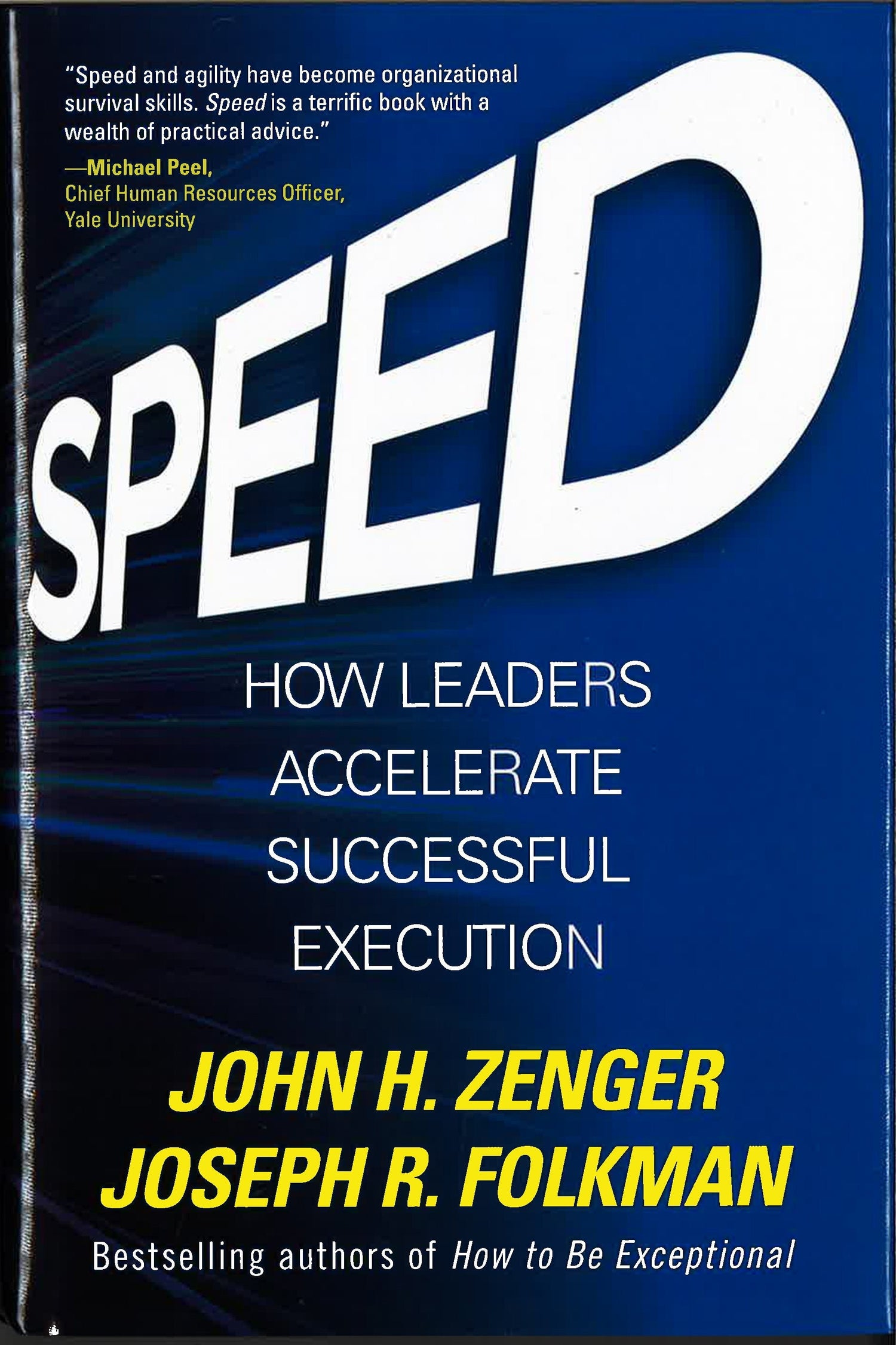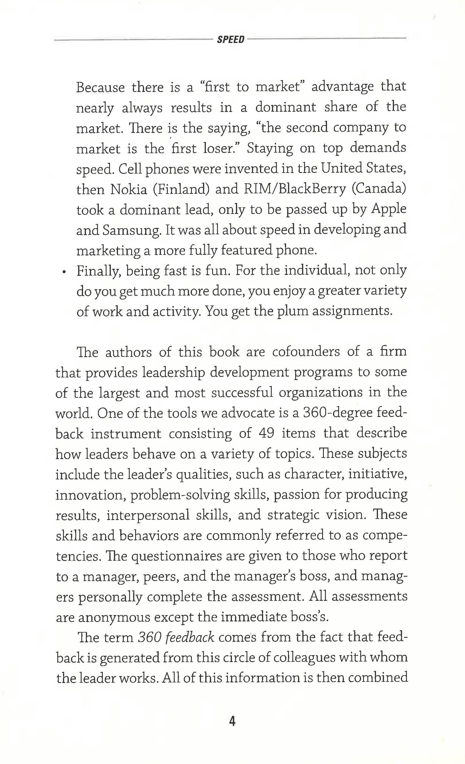 The book helps you assess the speed at which you work and make decisions and provides calibration regarding how you compare to 7,000 others in the authors' database. It then gives you tactics for speeding up critical elements of your day and, finally, explains how you can use the eight companion behaviors-including innovation, develop courage, initiate action, and set stretch goals--that help leaders to increase their speed.