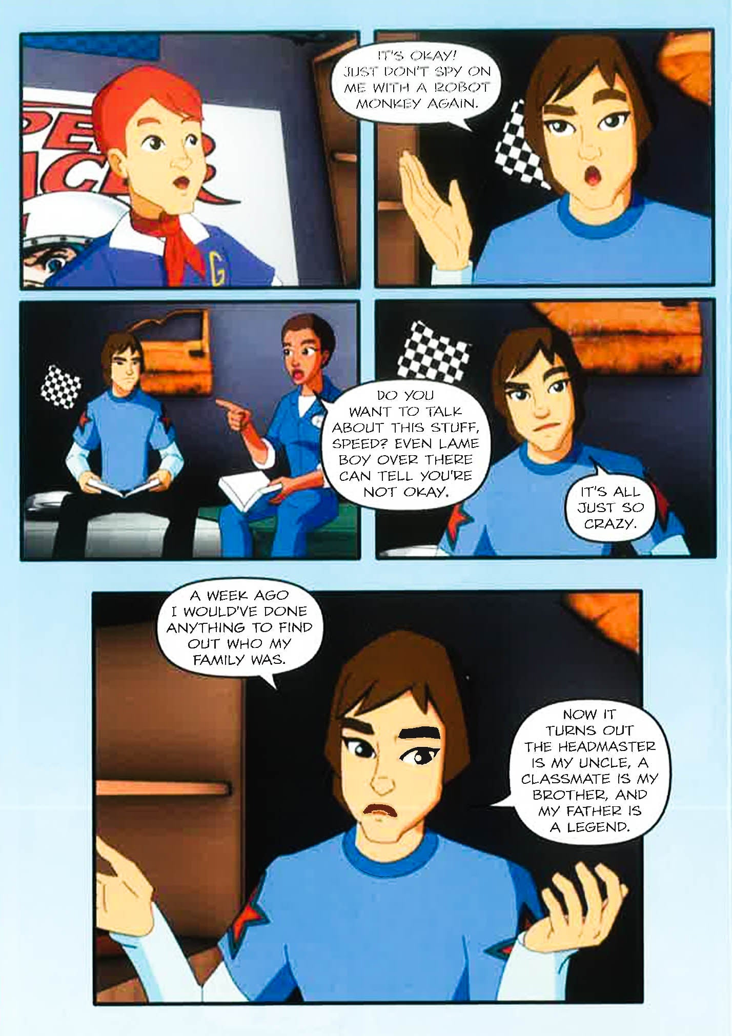 Geared toward a new generation of kids (ages 6-14) and action fans, Speed Racer: The Next Generation builds on the legendary adventures of the original iconic series and focuses on Speed's orphaned son as he contends with the everyday hassles of school life at the famous Racing Academy and uncovers the secrets and dangers behind his famous father's disappearance.
