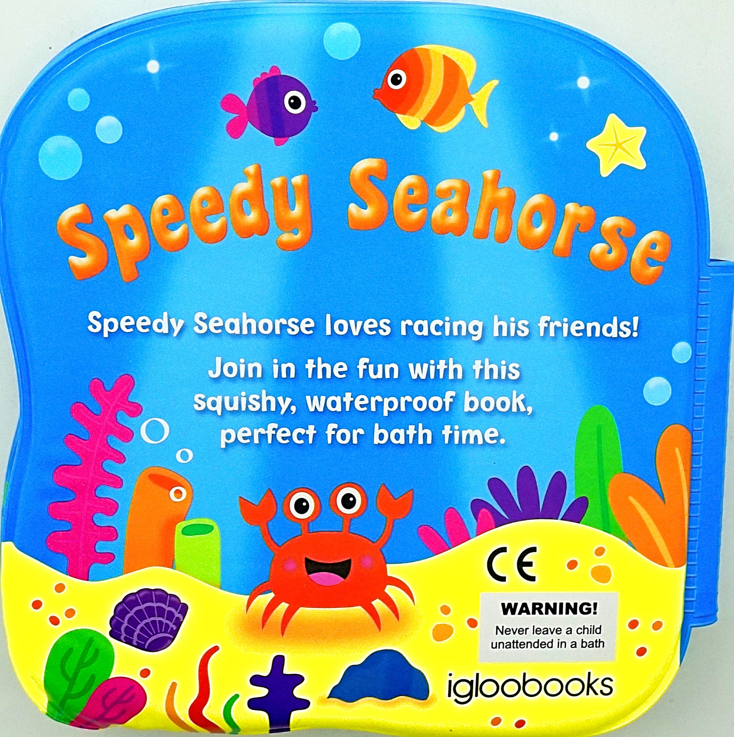 Speedy Seahorse loves racing his friends!Join in the fun with thissquishy, waterproof book,perfect for bath time.