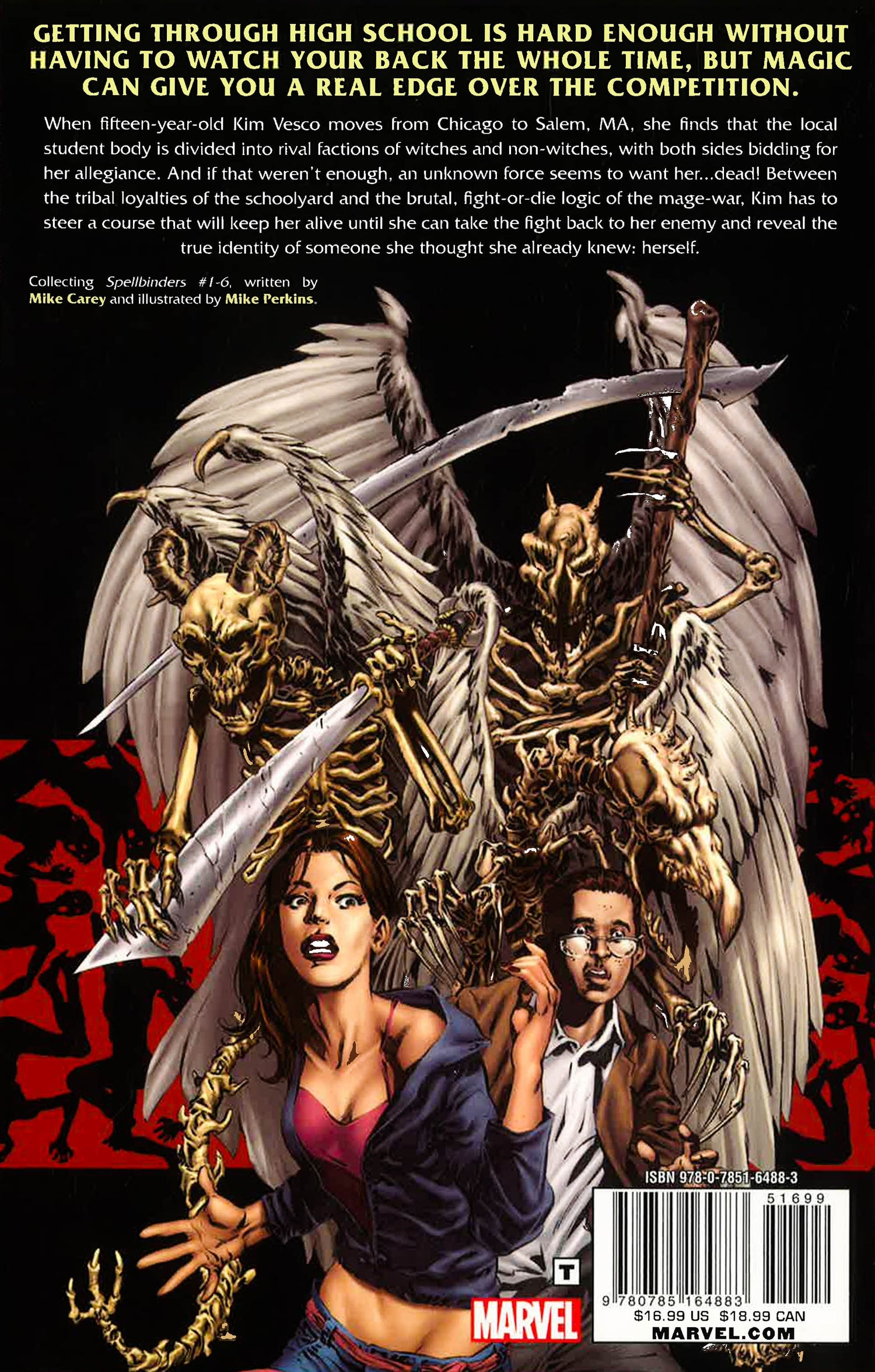 When fifteen-year-old Kim Vesco moves from Chicago to Salem, MA, she finds that the local student body is divided into rival factions of witches and non-witches, with both sides bidding for her allegiance. And if that weren't enough, an unknown force seems to want her...dead! Between the tribal loyalties of the schoolyard and the brutal, fight-or-die logic of the mage-war, Kim has to steer a course that will keep her alive until she can take the fight back to her enemy and reveal the true identity of someone she thought she already knew: herself. COLLECTING SPELLBINDERS 1-6