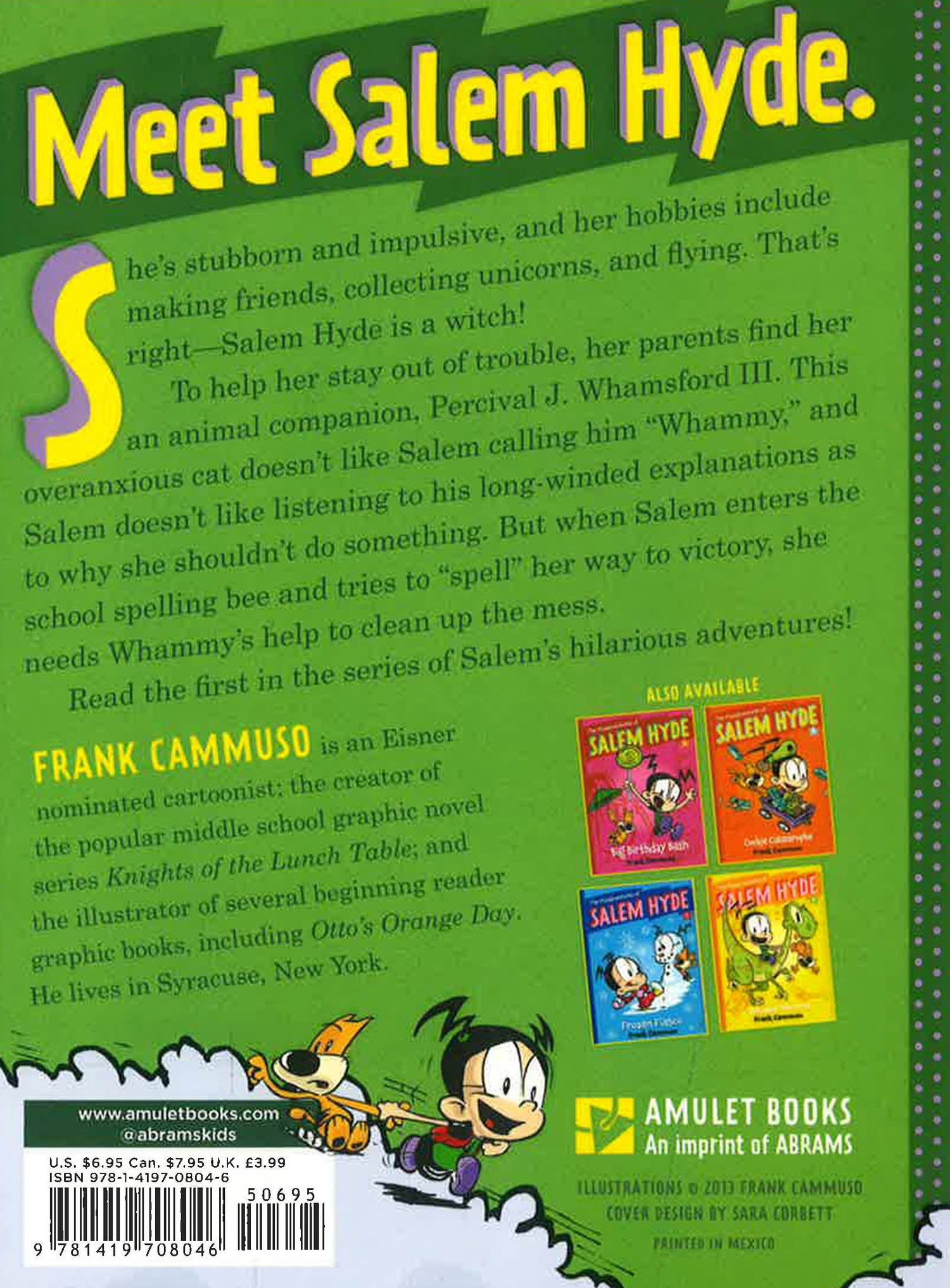 Salem Hyde just isn't like other kids. For one thing, she's stubborn, independent, and impulsive. For another, she's a witch. Salem acts first and thinks later-which means most of her thinking involves coming up with excuses! Good thing she's been assigned an animal companion, Lord Percival J. Whamsford III. This over-anxious cat doesn't like Salem calling him "Whammy," and Salem doesn't like listening to his long-winded explanations as to why she shouldn't do something . . . like enter the class spelling bee. Salem knows she can beat all her classmates at spells, no problem. Too late, she realizes the competition is about spelling words, not magic. And there's nothing like a misspelled spell to cause all kinds of havoc! Praise for The Misadventures of Salem Hyde: Book One STARRED REVIEWS "A fledgling witch receives necessary guidance from a talking cat in this utterly adorable page-turner... A delightful buddy story and an auspicious series opener; be sure to make room on shelves for Salem and Whammy." -Kirkus Reviews, starred review "It's just about the perfect story for comics-loving fathers to read with their comics-loving daughters." -Publishers Weekly, starred review "Cammuso evokes both the sarcastic spunk and gentle warmth of Calvin and Hobbes in this humorous tale of unlikely pals." -The Bulletin of The Center for Children's Books "Young readers will eat up Cammuso's (Otto's Orange Day, 2008) action-packed panels, full of cartoonish antics, silly puns, and playful slapstick humor." -Booklist "The humor, appealing artwork, and underlying message of friendship will attract readers." -Library Media Connection