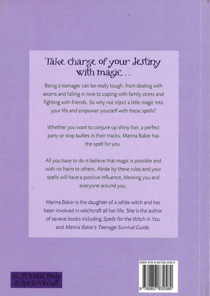 Spells for Teenage Witches is full of positive, helpful spells to solve problems faced by every teenager. Whether they want to conjure up shiny hair or stop bullies in their tracks, Marina Baker has the right spell for them.Being a teenager can be really tough, from dealing with falling in love to coping with family stress and fighting with friends. With the abundance of powerful female role models today, teenagers are looking to empower themselves. Spells for Teenage Witches is full of positive, helpful spells to solve problems faced by every teenager. Whether they want to conjure up shiny hair or stop bullies in their tracks, Marina Baker has the right spell for them. All they have to do is believe that magic is possible and wish no harm to others. As well as offering nearly 50 different spells, Marina Baker encourages teenagers to have a positive influence on everyone around them.
